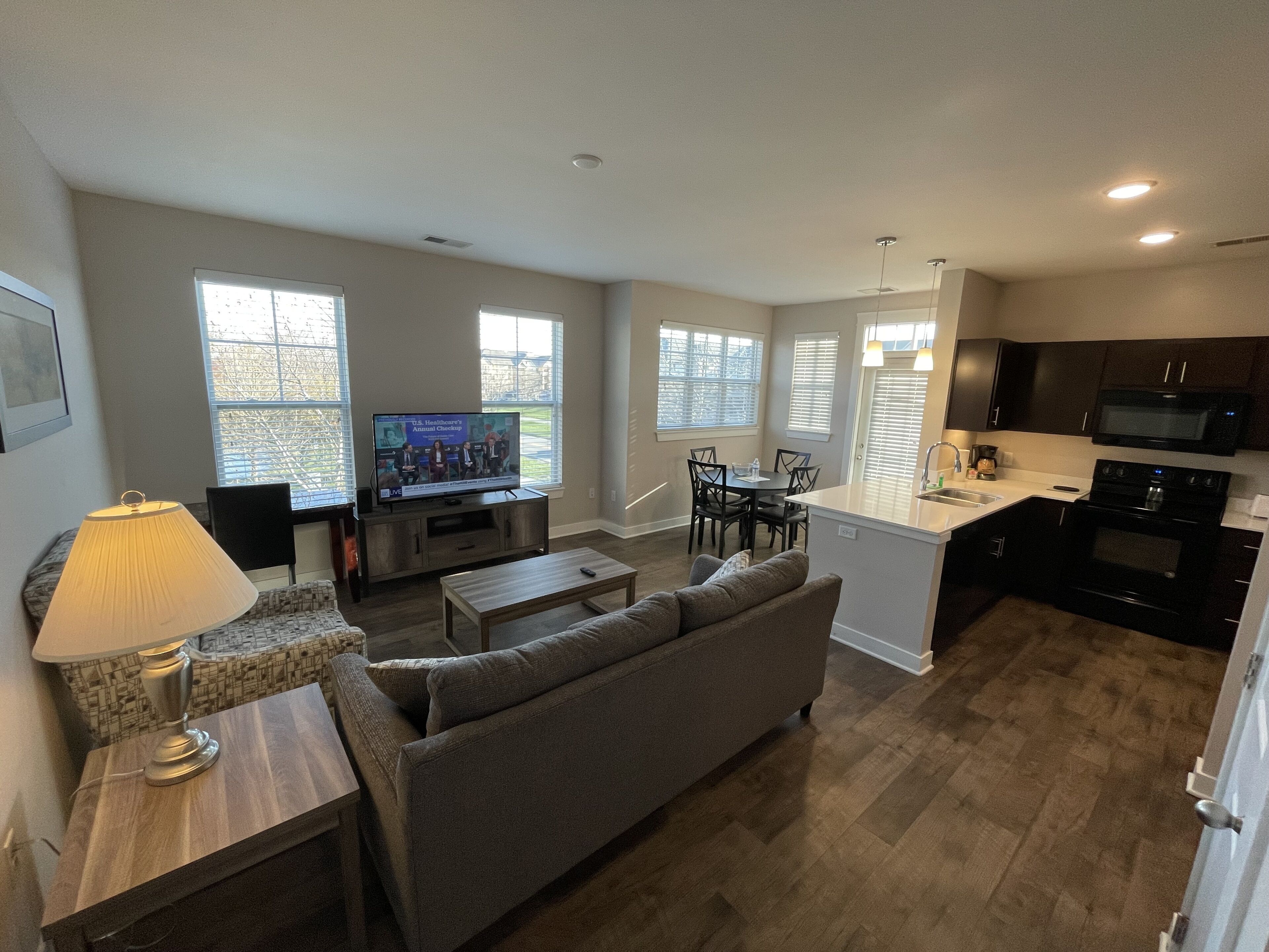 - "House very comfortable for the six of us. Great location. Coffe shop brewery close by. House clean and spacious. Made use of the fireplace and large private balcony. Garage parking a plus. The park at town square was perfect viewing spot for the eclipse. Great walking community" - "Loved this property. It was in a very cool neighborhood and beautifully decorated. Plenty of room for our family of 3 adults and three children. It was not a great weekend weatherwise for the Indy 500 so it was nice to have such a great place to hang out in."