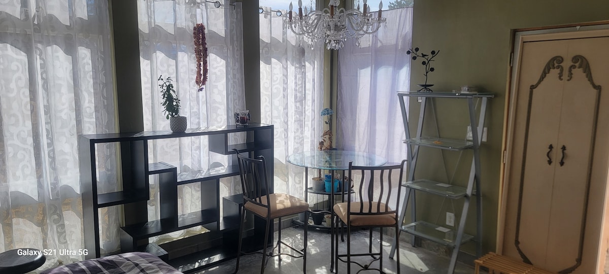 Light and bright rustic studio space with simple kitchenette and full bed. Access across the backyard to main home for shared full kitchen, laundry, and 3/4 bath. Private and peaceful sleeping space! No television, air conditioning, attached bath, or black-out curtains.