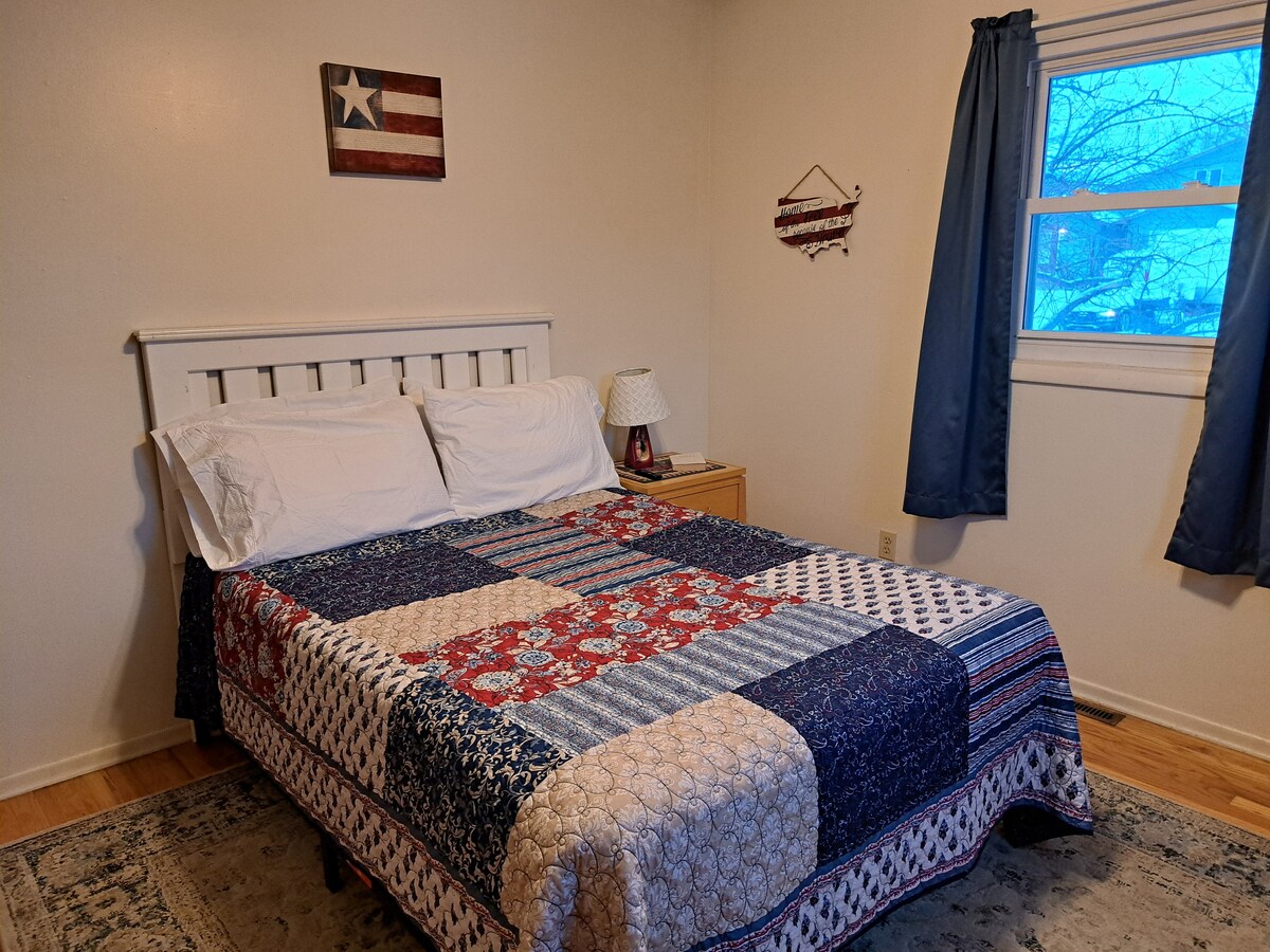 This 2nd fl space used only for AIRBNB. Listing is for the entire Guest Suite; 2 bedrooms, 3 beds/bath &sm kitchen. Kitchen; frig, countertop oven, microwave, 2 burner cooktop, sink, coffee maker, cooking pans & utensils, dishes. Each bdrm has desk/workspace. High-Speed Wifi. The home is warm, inviting, comfortable. Guests are able to come/go as & when they please-2nd fl. stairway is a few feet from the entry/front door of home Owners use back door/rear parking- guests use front door/front parking. Pets welcome. Dogs can be walked nearby. Off-street or street parking. Backyard; patio, BBQ grill/fire pit/+seating in summer. Good for visitors/students/business/healthcare travelers. ACs are programmable &we ask guests to use this function or pls shut off when leaving house for more than a brief amt of time. **NOTE; We’re doing some misc upgrades , i.e. new kitchen cupboards, painting, replacing doors, etc., so there probably will be MINOR evidence of some type of 'work in progress' (an unpainted door or door trim removed, etc). Nothing that inconveniences guests.**.