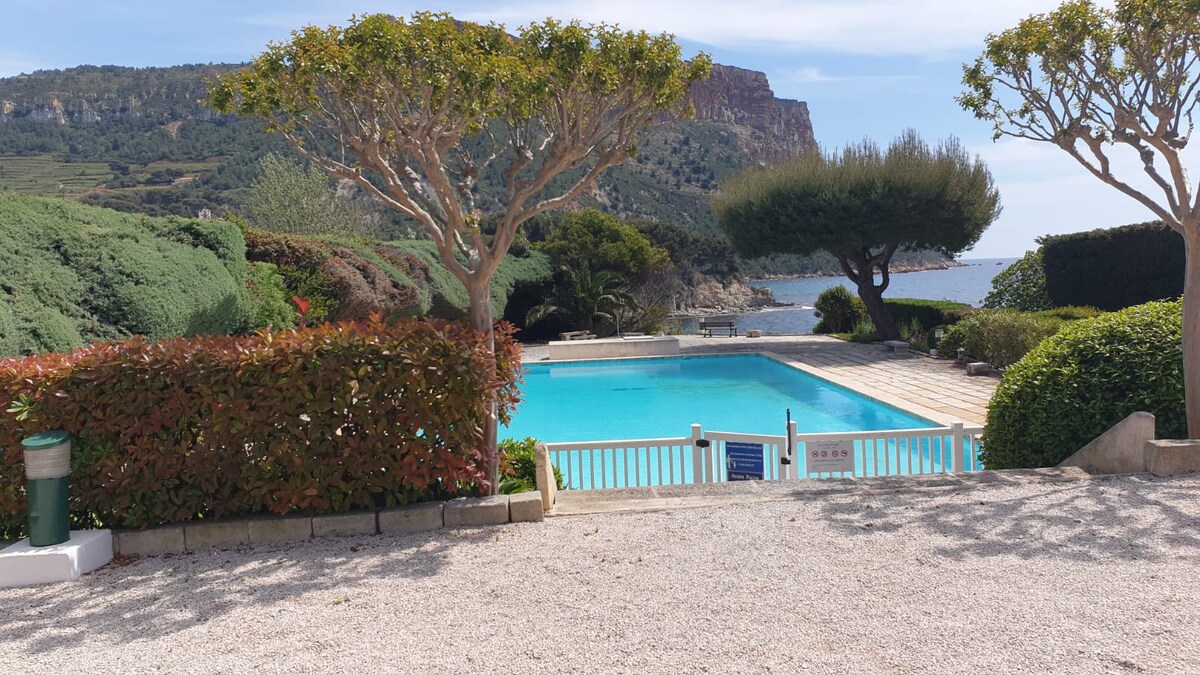 Nouveau !! Appartement au rez de chaussée de la maison, donnant sur la piscine à débordement chauffée dès le mois d'avril . Vues mer et Cap Canaille exceptionnelles .Décoration soignée, terrasse privative , solarium de 300 m2 autour de la piscine , exposition plein sud. Cuisine équipée, salon séjour ,belle salle de bain à l'italienne, deux chambres très confortables. Parking gratuit et facile devant la maison. Barbecue privatif à côté espace terrasse et coin repas extérieur.