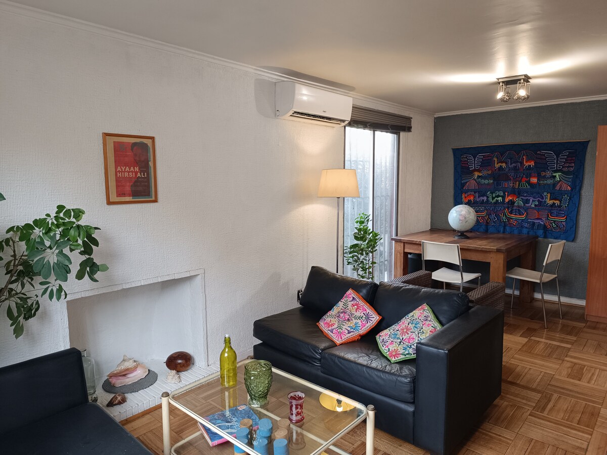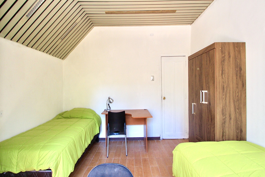 Private twin room with shared bathroom centrally located in Providencia, Santiago. The room includes the use of common areas such as a fully equipped kitchen 24/7, yard, dining room, refrigerator, lockers, washing and drying machine for a fee (either machine has a cost of $1200 Chilean pesos per use)