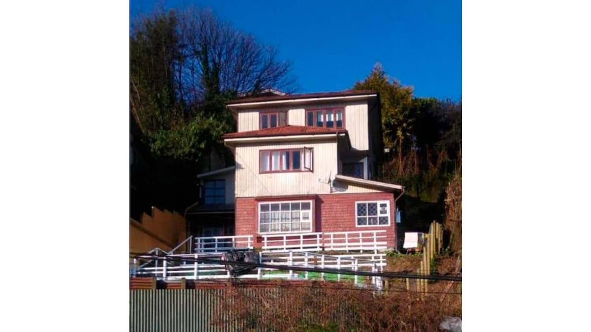 Located on one of the slopes of downtown Puerto Montt, 800 meters from the main square, 600 meters from supermarkets, 600 meters from bars and restaurants, built in 1962 using native wood, overlooking the city, and with a spectacular terrace.