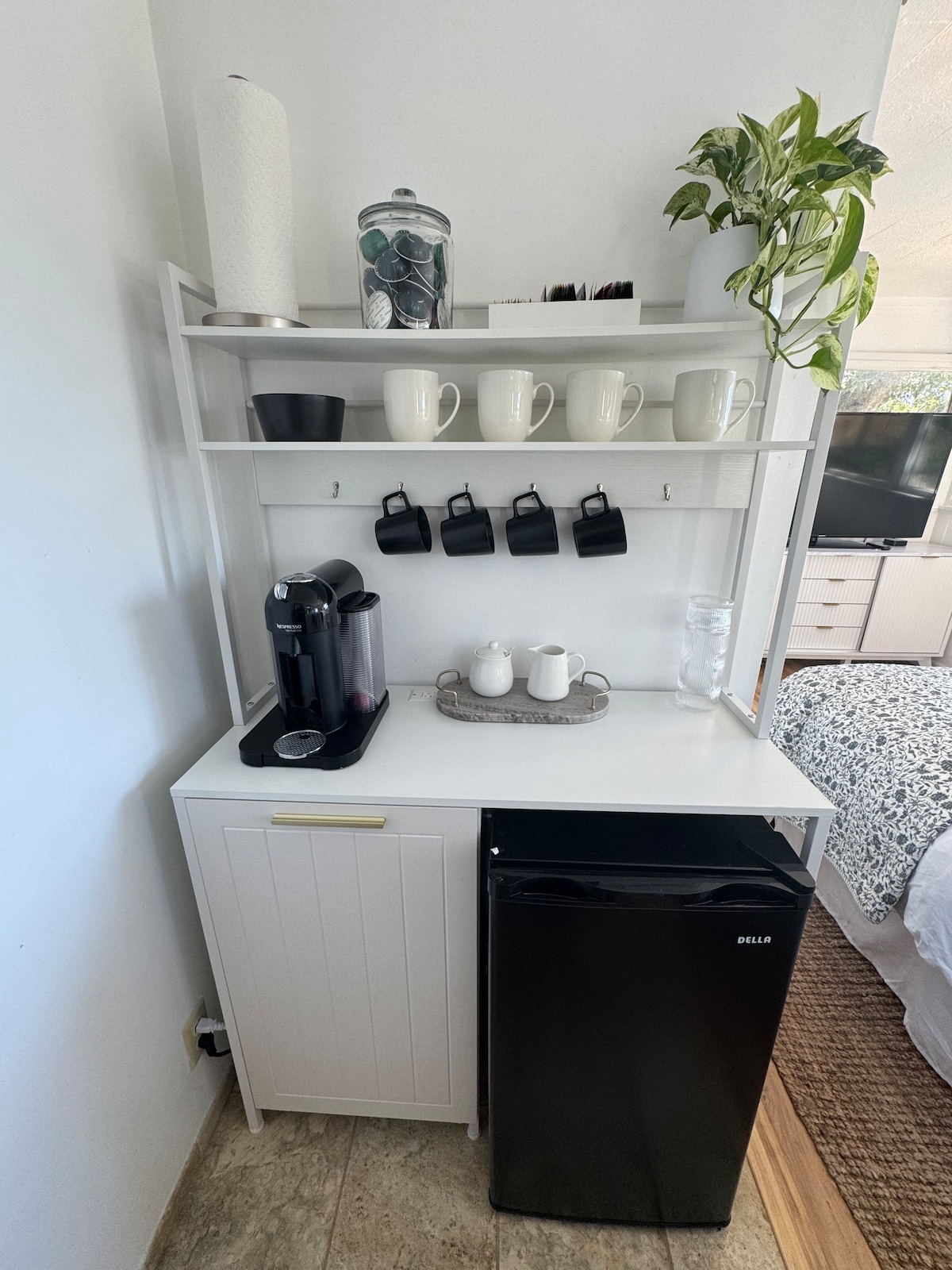 - Drip coffee maker (coffee provided), coffee grinder. espresso maker