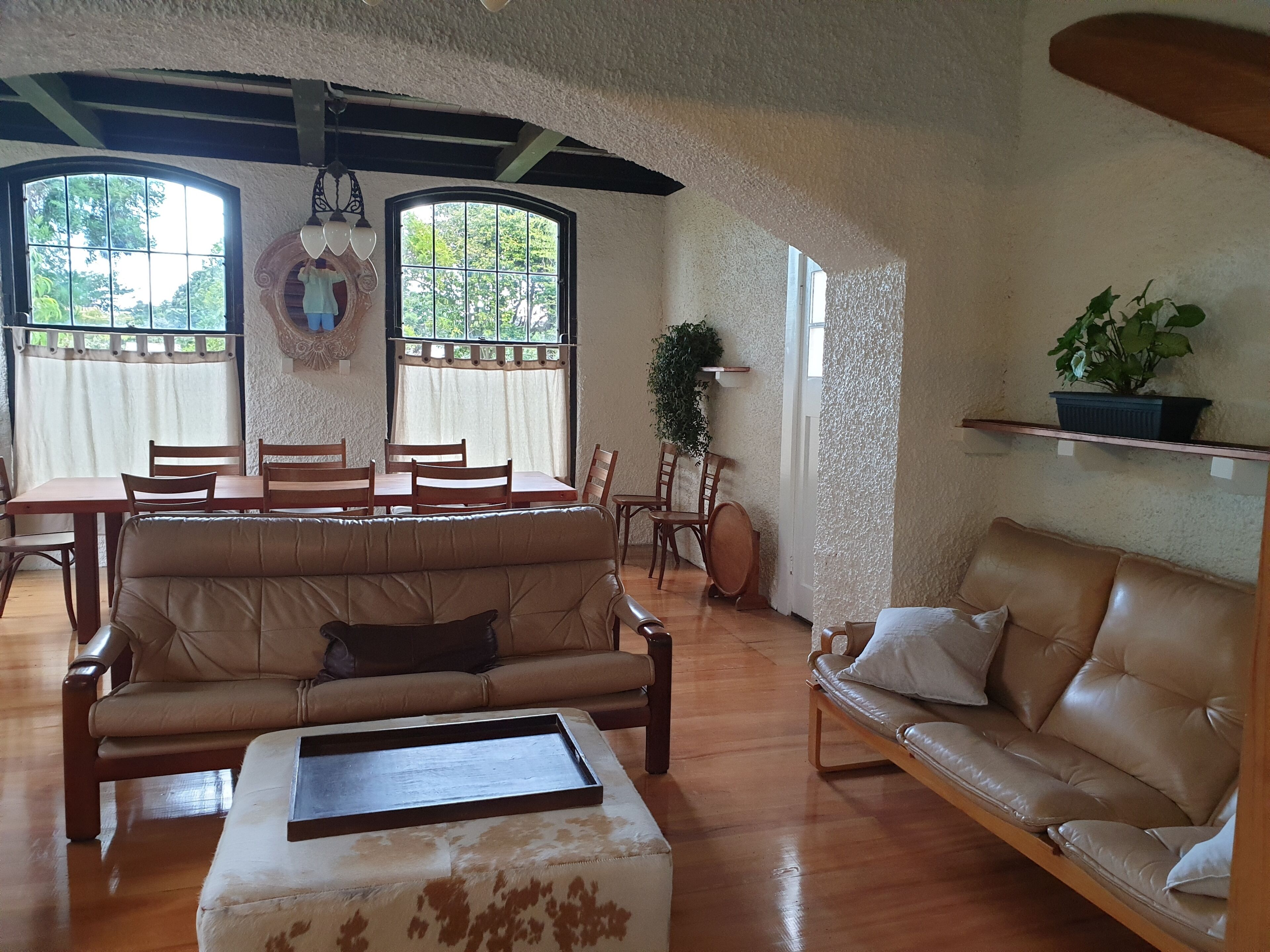 Our 3 bedroom clean and tidy home is your peaceful escape from the hustle and bustle of the outside world! Downstairs, the dining and kitchen area is compact and low maintenance with electric oven, stove, heating and cooling. Two cosy bedrooms and a bathroom with a shower over a wee bath provide your simple staples for comfort. Upstairs is the master bedroom complete with lounging space and a small ensuite. Outside is our separate living/rumpus room for hanging out, reading or watching a movie, playing the piano or table tennis or darts! We have a selection of children’s toys and books too. The wash house is also separate and is equipped with washing machine, drier, clothes horses, a large freezer and extra fridge space. The garden is our highlight with a spacious flat lawn surrounded in native and tropical plantings providing shade, bird life and relaxation!