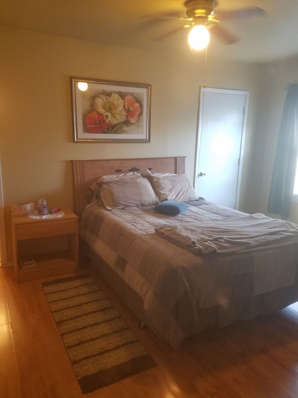 This unit is a fully furnished guest apartment connected to a large garage/shop area - separate from the main house on the property. It features a designated parking spot off of the street (uncovered) and a private lighted entrance. The unit includes a small kitchen with a full-sized refrigerator, an electric oven, and a private bathroom with a shower (only). The guest apartment is comfortably outfitted for 1-2 people and is fully furnished.