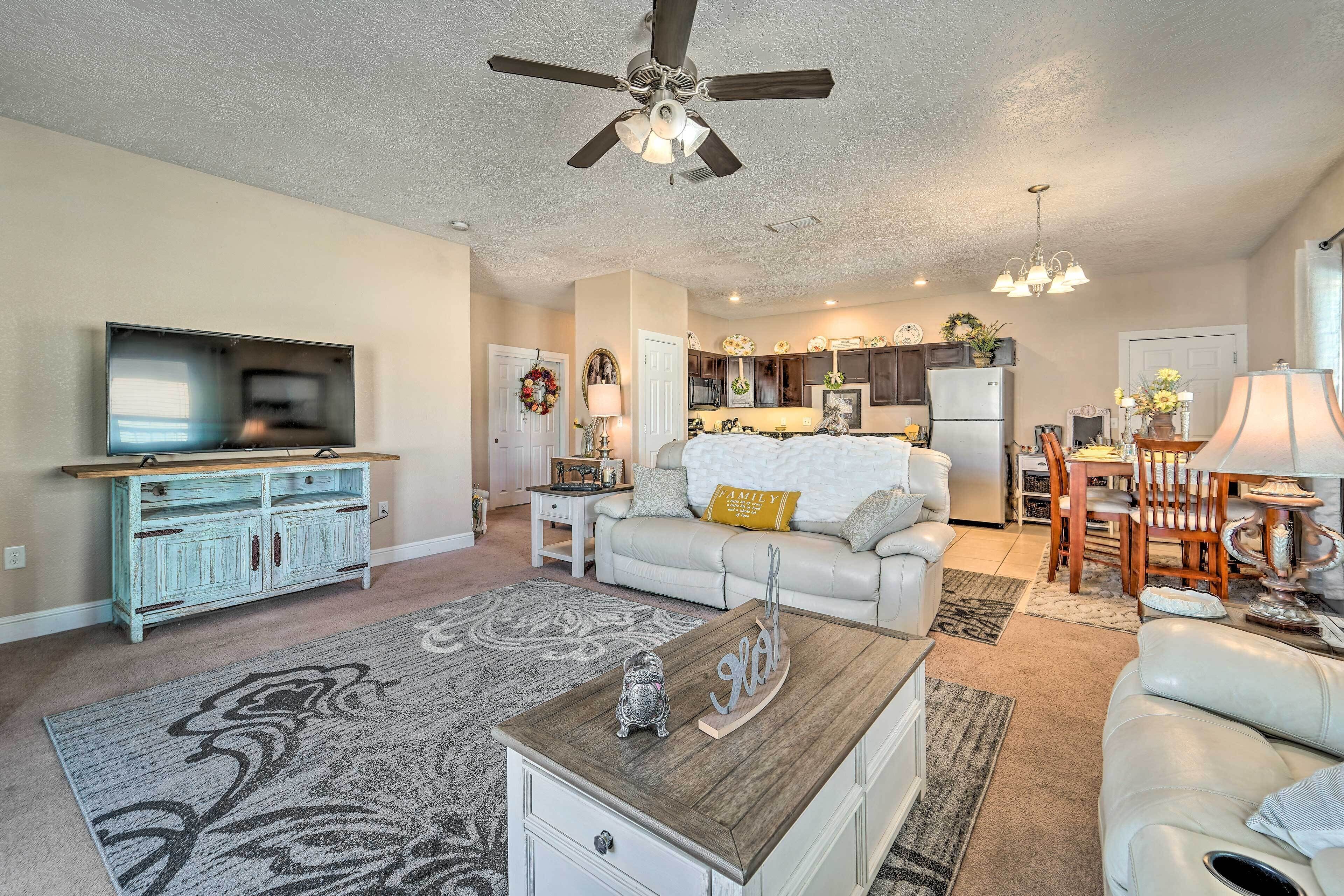 Boasting a peaceful location, easy access to the area’s attractions, and all the comforts of home, this Portales home offers a convenient escape for families and road trippers alike.