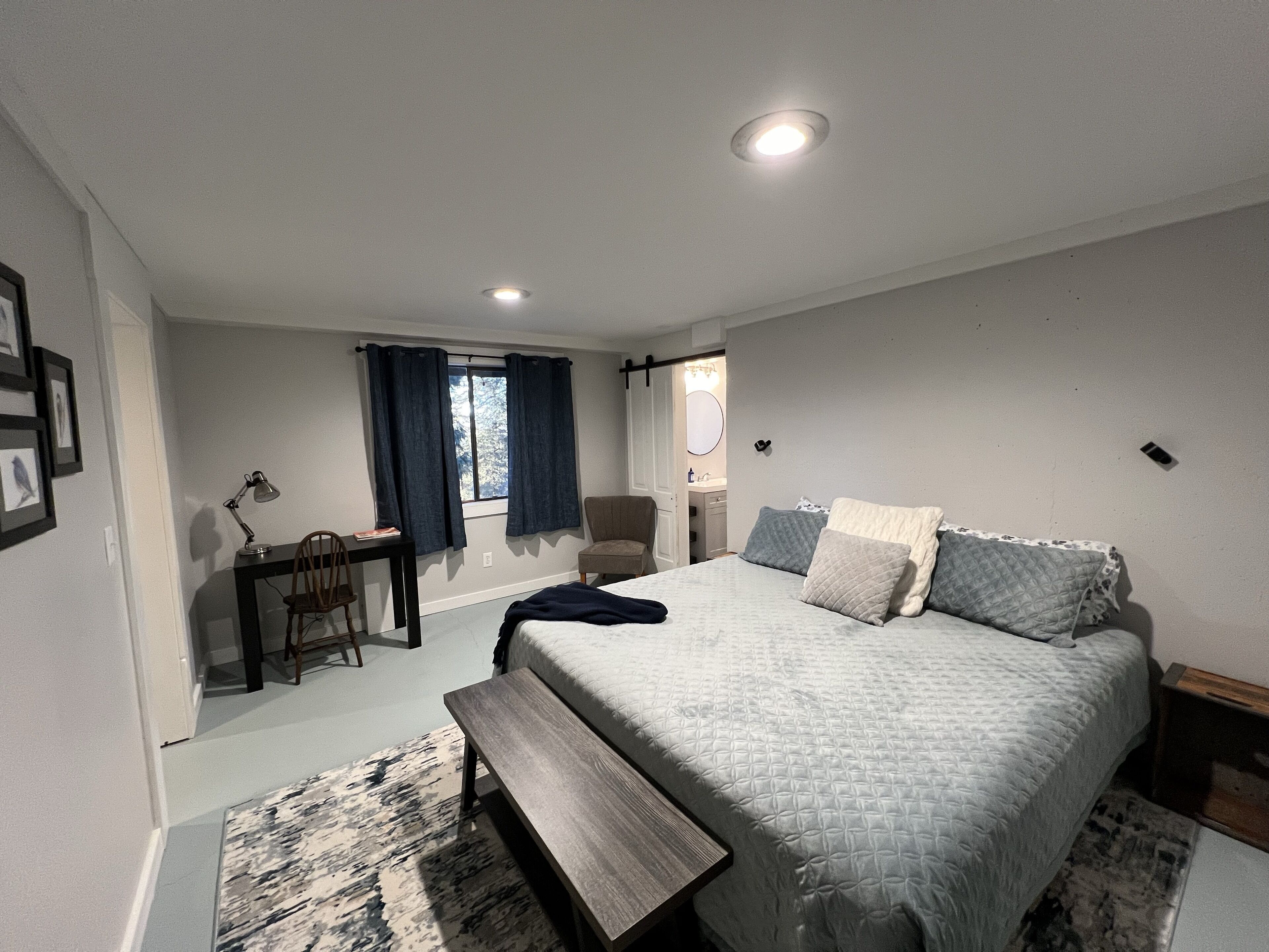 Relax in this well appointed private bedroom with adjoining seating area. We provide many conveniences at your fingertips including a coffee station, microwave, and mini fridge. Enjoy the views over the valley below and into the fertile Palouse Hills. You may even spot some wildlife. You’ll have your own entrance and a private bathroom to make your stay comfortable and convenient.