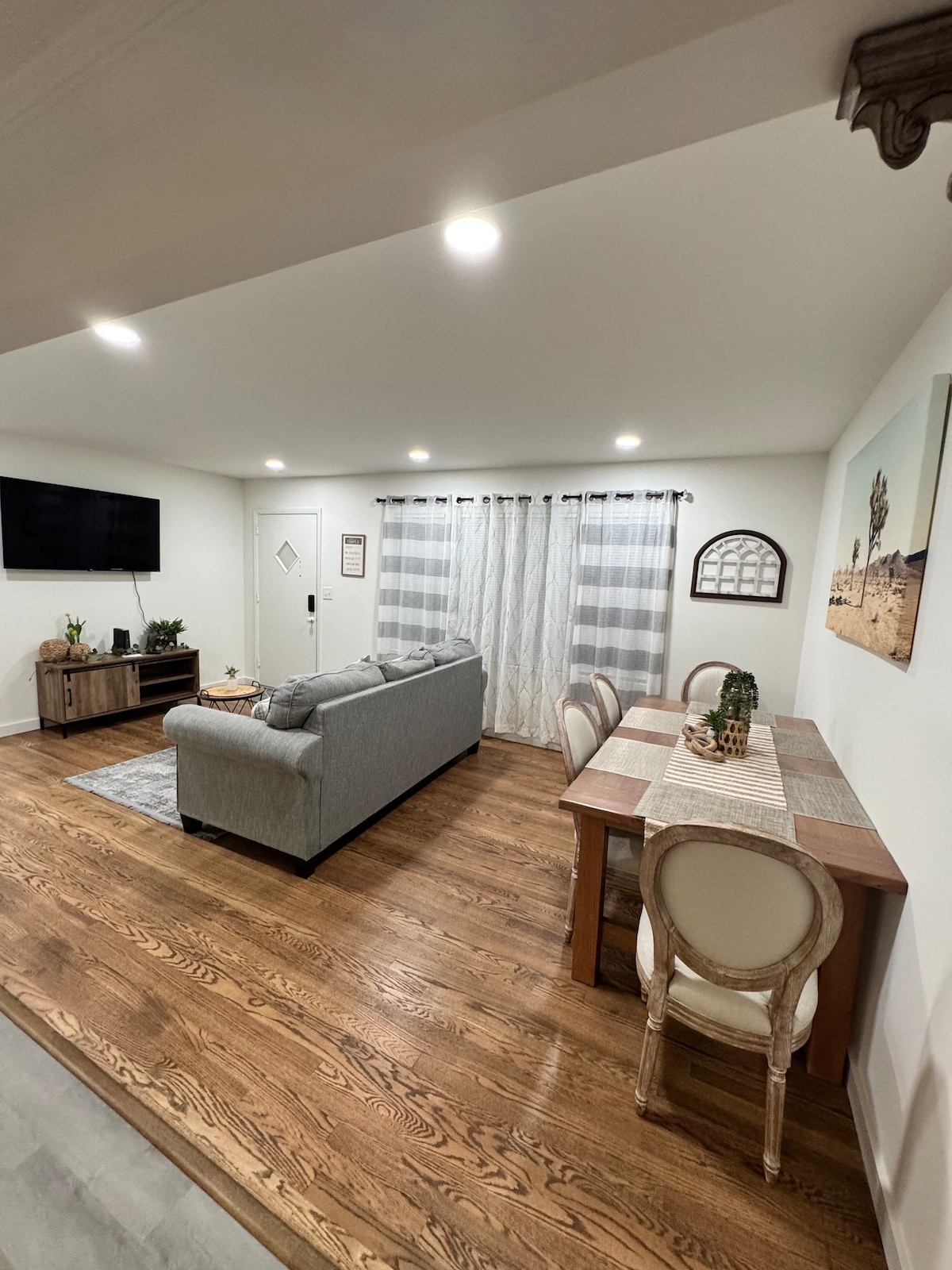 This is a cozy and newly furnished basement apartment in a home.