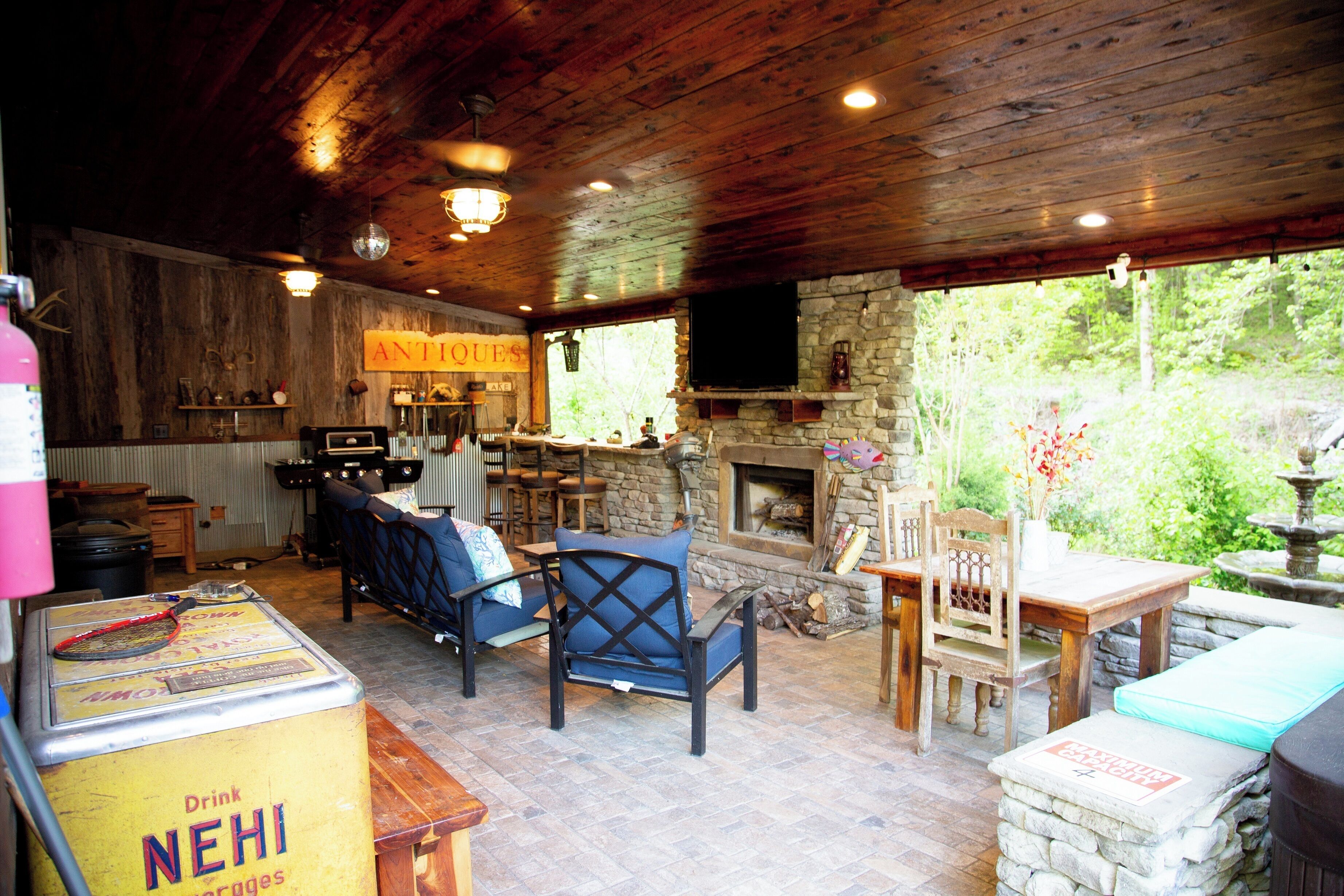 Step outside to enjoy the beauty of nature with three inviting outdoor areas, each offering a unique way to unwind. Whether you're soaking in the hot tub under the stars, enjoying a meal on the open deck, or sipping your morning coffee on the screened-in porch, the cabin's outdoor spaces are designed to help you recharge and reconnect.