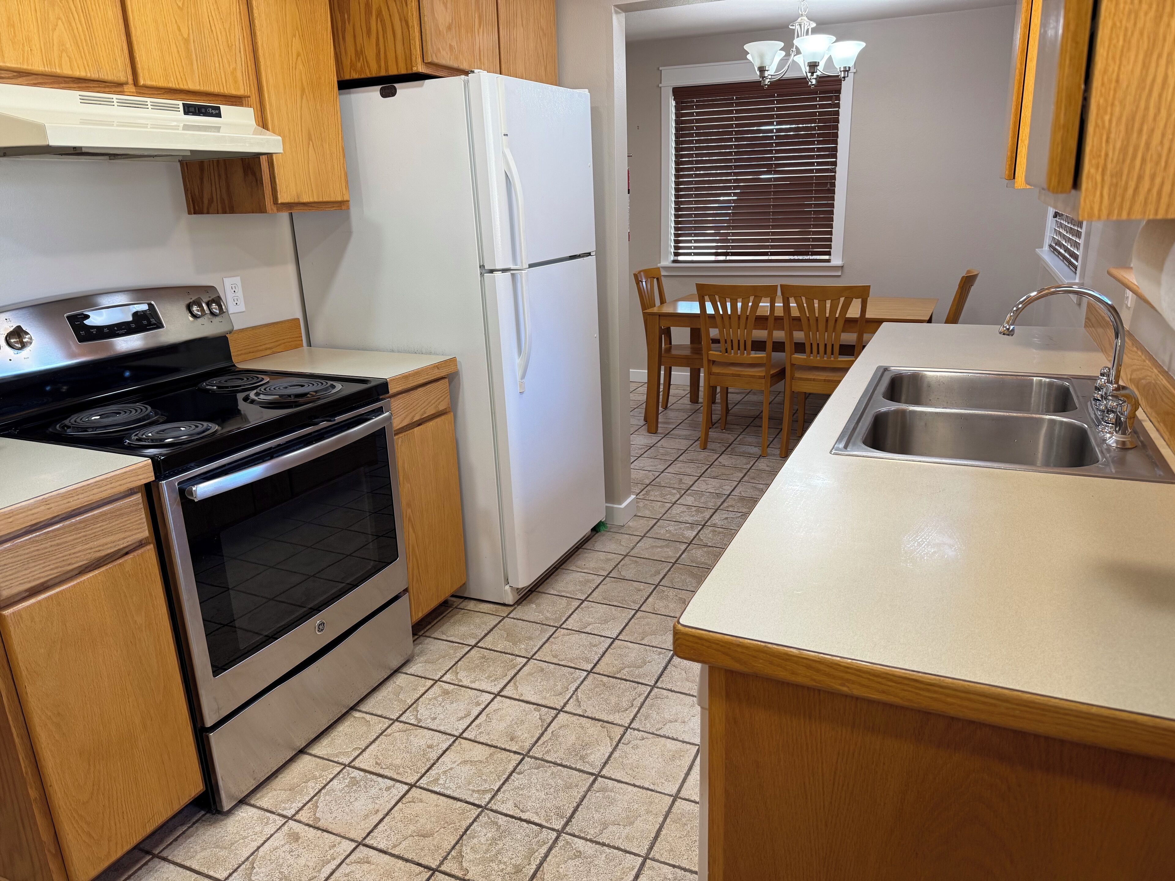Fully set up kitchen to make cooking enjoyable and efficient. Full size stainless appliances including refrigerator, stove, microwave, coffee maker and toaster to create efficiency. Dishes, utensils and basic cookware included for your convenience.