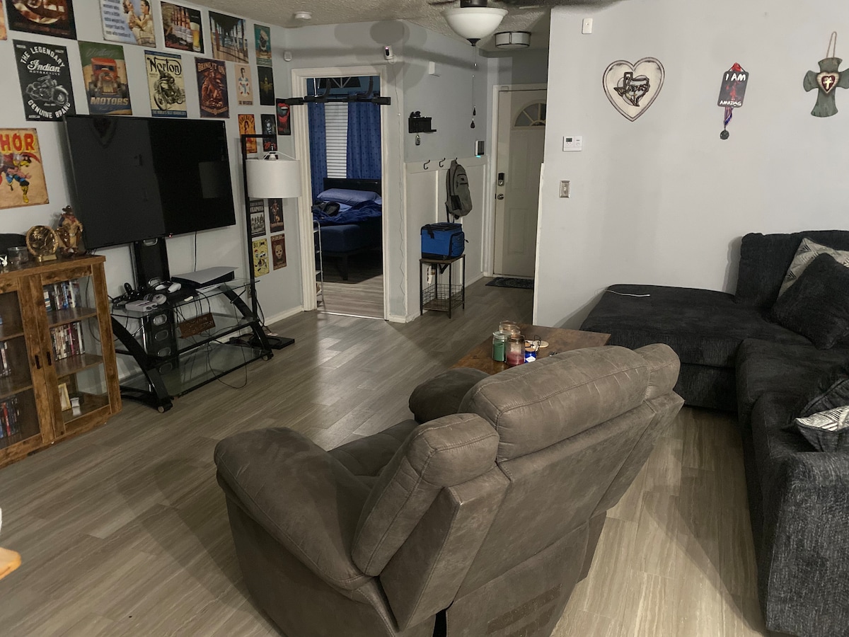 Your family will be close to everything when you stay at this centrally-located place. 20 minute drive to the beach or Downtown. 10 minute drive to the shopping centers in town and 25 minute drive to the refineries. The living room is available to relax and watch TV on a bigger screen(HBO MAX included in the bed room) and the back patio is available for a smoke break.