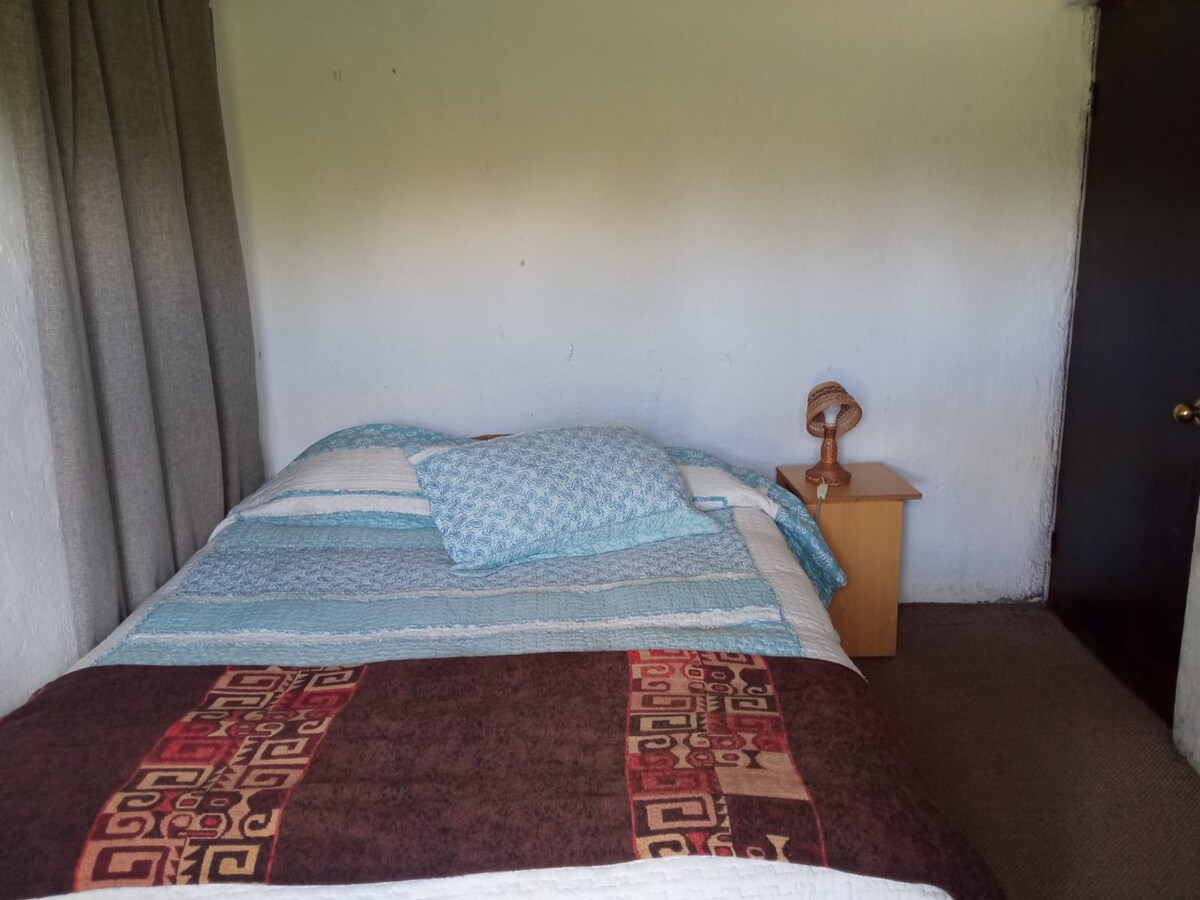 Corner house with private parking, spacious room for two people with excellent natural light and desk. Garden for walking barefoot in front and on the side of the house. Araucaria available in the front garden to be hugged when you need it. We live 15 to 20 minutes walking from downtown Coyhaique.