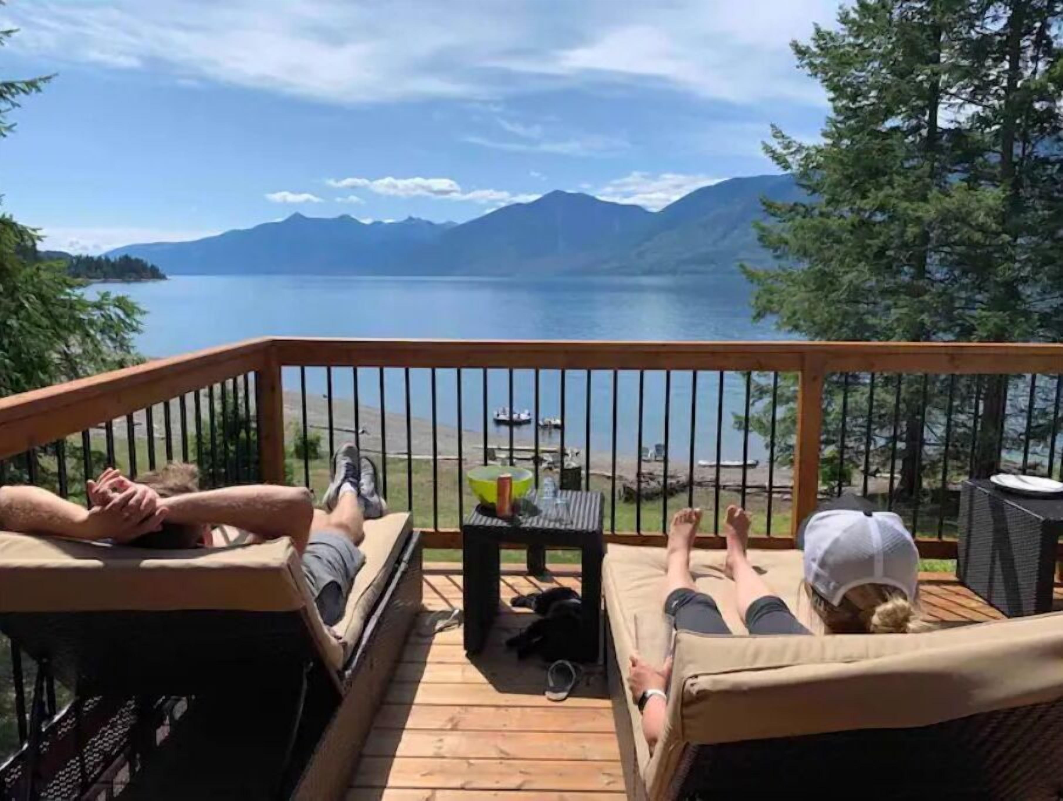 - "Extended family trip to bc. Beautiful location and log cabin. Beds were super comfortable everyone enjoyed to got tub overlooking kootney lake. Would recommend and rent this cabin again!" - "Highly recommend. Gorgeous location, 15 minute walk or two minute drive to beautiful rocky beach with clear, clean swimming water, a fun dock, and gorgeous views. Air conditioning worked great. Deck fabulous. Kitchen well supplied, and good wifi. Host communicative. Worked great for four adults and three kids (two on blow up mattresses, one big one supplied by host.)"