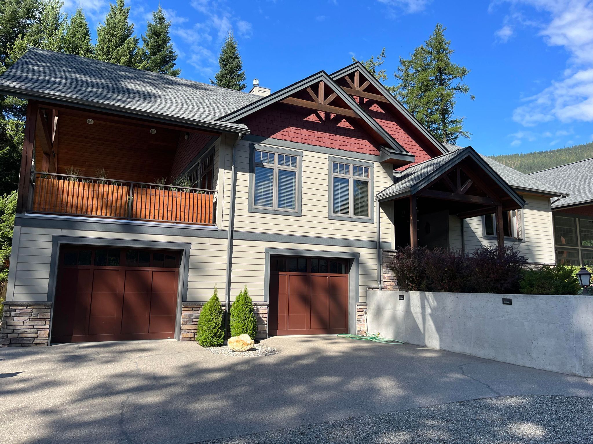 We have a beautiful property nestled in the trees with lots of outdoor space and a spectacular view of the town & mountains.