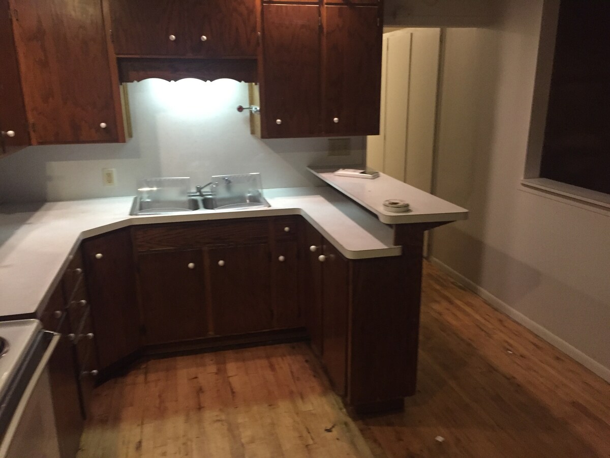 The Iron Willow was originally a lake cabin! It was moved to it's current location about 25 years ago (sorry, no lake!). The fully stocked kitchen includes a full-size refrigerator with water dispenser and ice, electric stove, microwave, keurig coffee maker and more. The main level has a vaulted ceiling, open floor plan, kitchen island with seating and window air-conditioning units. The master bedroom with TV, a bunk-bed room and a full bath are also on the main level. There is an Echo Dot with Amazon Alexa in the living room. Ask Alexa (via Echo Dot) to turn on the TV, play some music, turn off the lights, lock the doors and more!