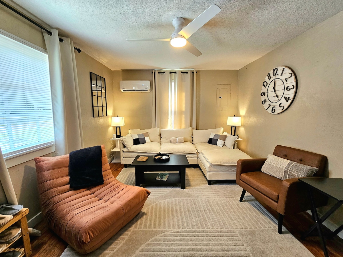 *Living Room- features couch, 2 side chairs, TV stand with 55” smart TV to access your personal Netflix, HULU etc accounts.