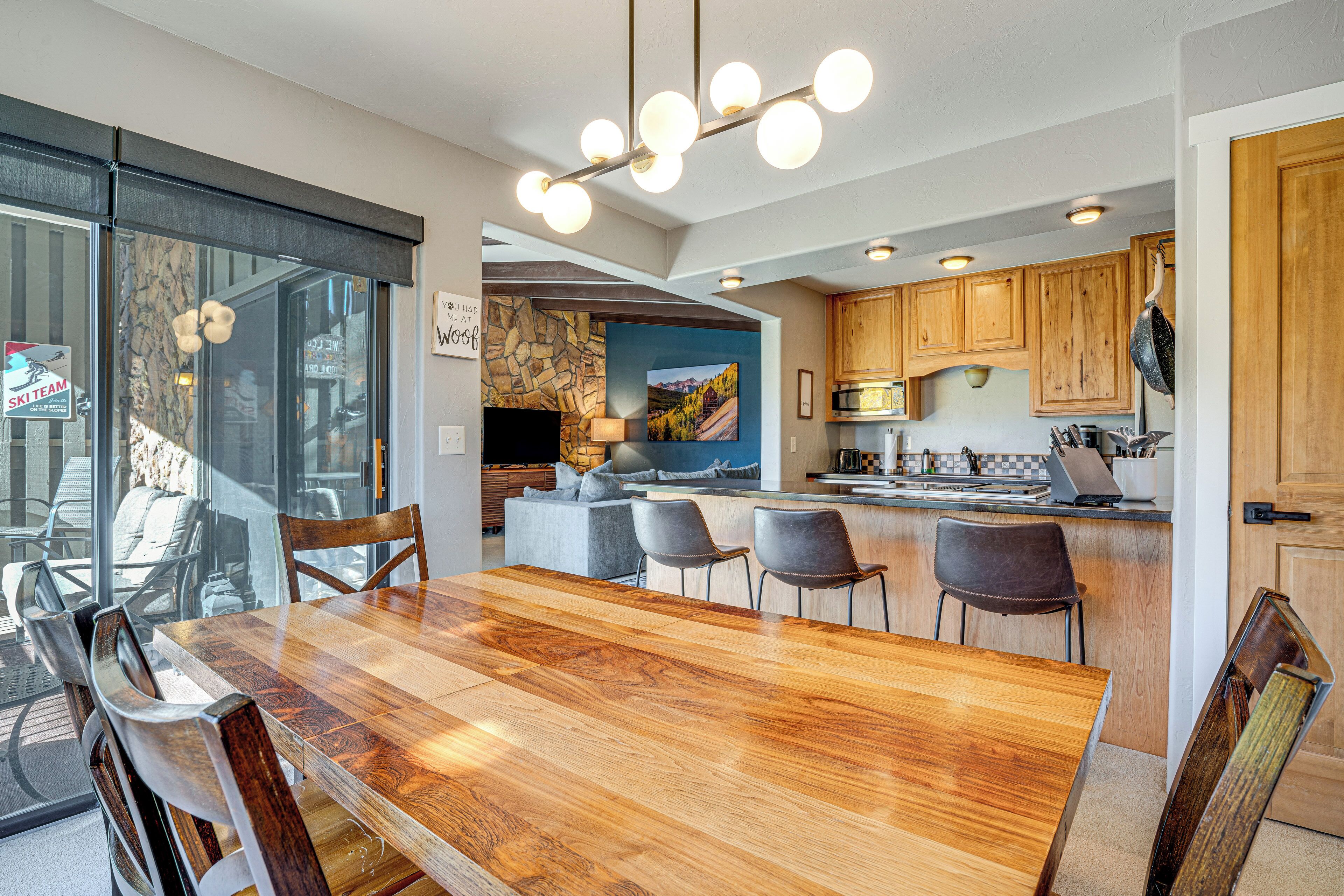 After a long day of adventure, nothing beats coming back to your condo and relaxing in front of the wood-burning fireplace. Enjoy the stunning views from the living room while sipping on a hot cup of cocoa. Prefer a hot tub instead? The nearby clubhouse has two hot tubs, a pool, a sauna, and more.