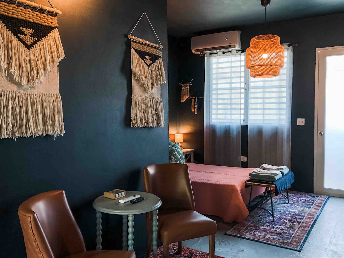 Modern simple decor, close to hotels, steps from the beach , restaurants , pharmacy and shops. Living area in the courtyard for guest use only and enjoy beautiful sunsets and nights of Moon and sky full of stars