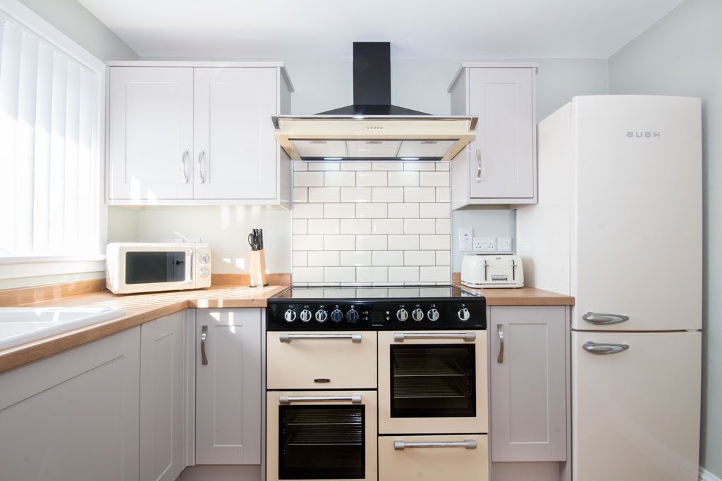 The lounge offers guests an airy room with an L-shaped fabric sofa, 2 armchairs, wall mounted smart TV with Freeview channels, coffee table and a Juliet balcony. The kitchen is equipped with an electric oven, electric hob, dishwasher, microwave, kettle, fridge, toaster, washing machine, pots and pans with plenty of kitchenware. The dining area has a table and chairs seating up to four guests. The master bedroom benefits from a double bed, bedside cabinets with lights, built in mirrored wardrobe, chest of drawers, end of bed chest and a window overlooking Dornoch Cathedral. The twin bedroom is furnished with 2 single beds, bedside cabinets with lights and a chest of drawers. The shower room has a double shower with on-demand hot water. Wash hand basin and toilet. There is an ironing board and iron and hairdryer. There is gas central heating throughout with on-demand hot water. Wi-Fi is included.