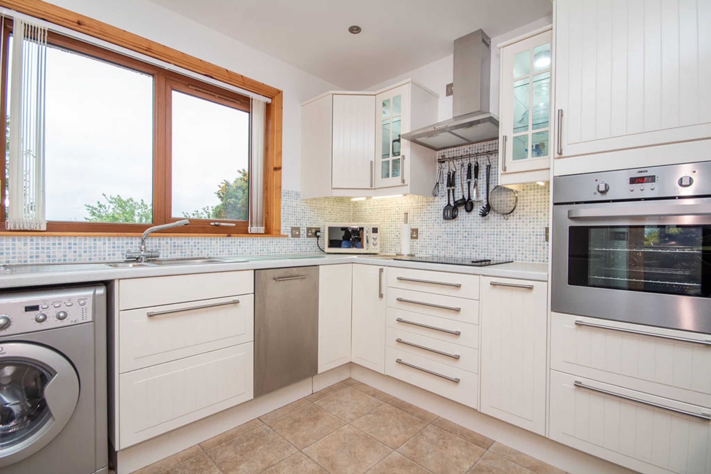 Ground floor: The modern lounge/ sun lounge offers guests a bright, airy room with L-shaped settee, TV with Freeview channels and a music station. The sun lounge has 4 armchairs, patio door with access to decked area. Great views toward the Dornoch Firth. The kitchen/ dining area is equipped with an electric oven and induction hob, dishwasher, washing machine/ dryer, microwave oven, electric kettle, toaster, pots, pans and plenty of kitchenware. The dining table has 6 chairs. The master bedroom is furnished with a king-size bed, bedside cabinets with lights, chest of drawers, built in mirrored wardrobe and a wall mounted mirror. The spacious en-suite bathroom has a bath, shower, wash hand basin and toilet. The wet room has a shower with wall mounted stool, toilet and wash hand basin. Suitable for guests with mobility restrictions. 1st floor: The second bedroom consists of a super-king bed or 2 singles, bedside cabinets with lights, chest of drawers, vanity mirror and a radio. The third bedroom is furnished with a super-king bed or 2 singles, bedside cabinets with lights, chest of drawers, vanity mirror and radio. The upstairs bathroom has a bath, wash hand basin, mirror and toilet. The garden/ outside is a fenced garden at the front of the house, mainly grass. Decked seating area with outside furniture and BBQ. Washing line. Off-road parking for 3 cars in the driveway to the side and at the front of the house. There is an ironing board and iron and hairdryer. The house is heated with an air mass system in the ground floor and electric heaters upstairs. Guests have access to the entire property.