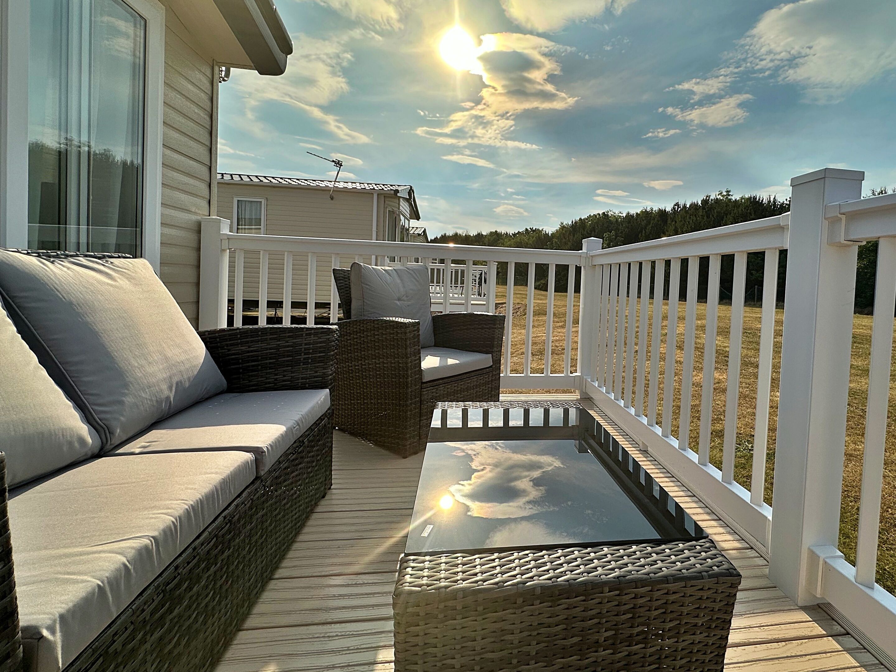 Welcome to our beautiful, pet friendly home from home. Set in a quiet and more private part of the park, our holiday home is perfectly sited to ensure you’re just minutes walk from the beach and the main facilities!