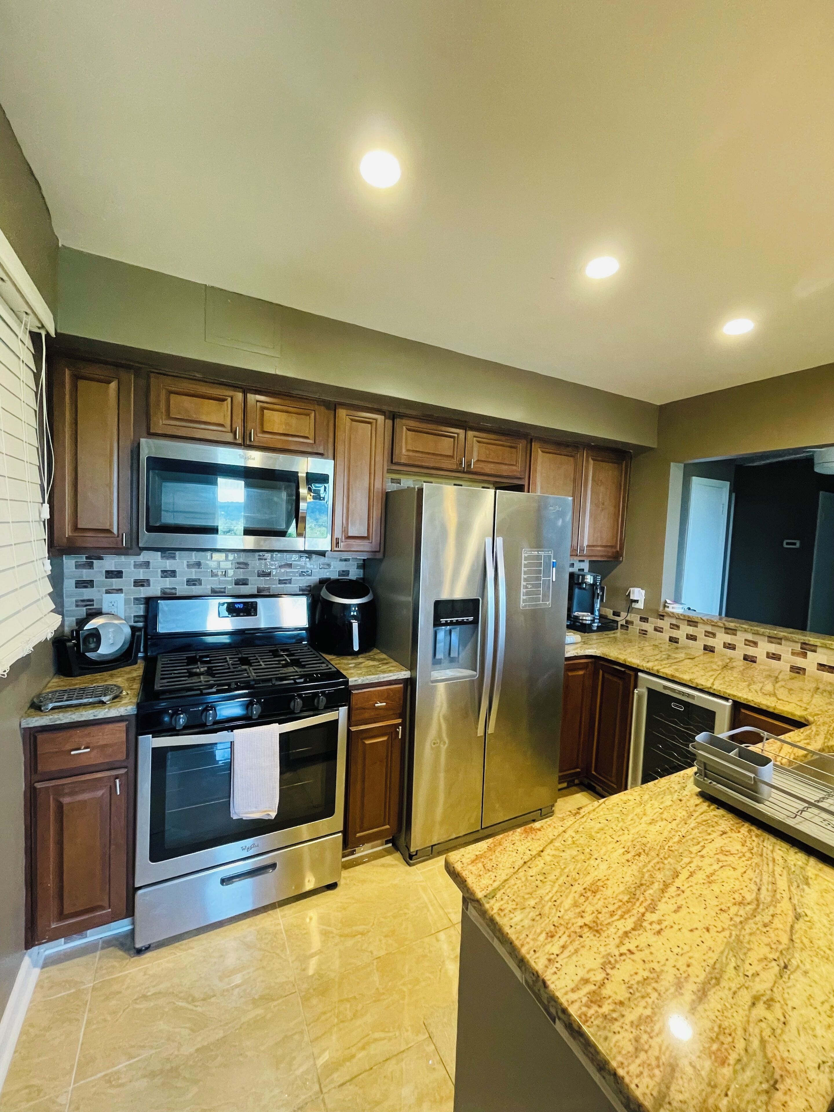 w 5 burners, double convection oven, oversize refrigerator. Kitchen comes fully