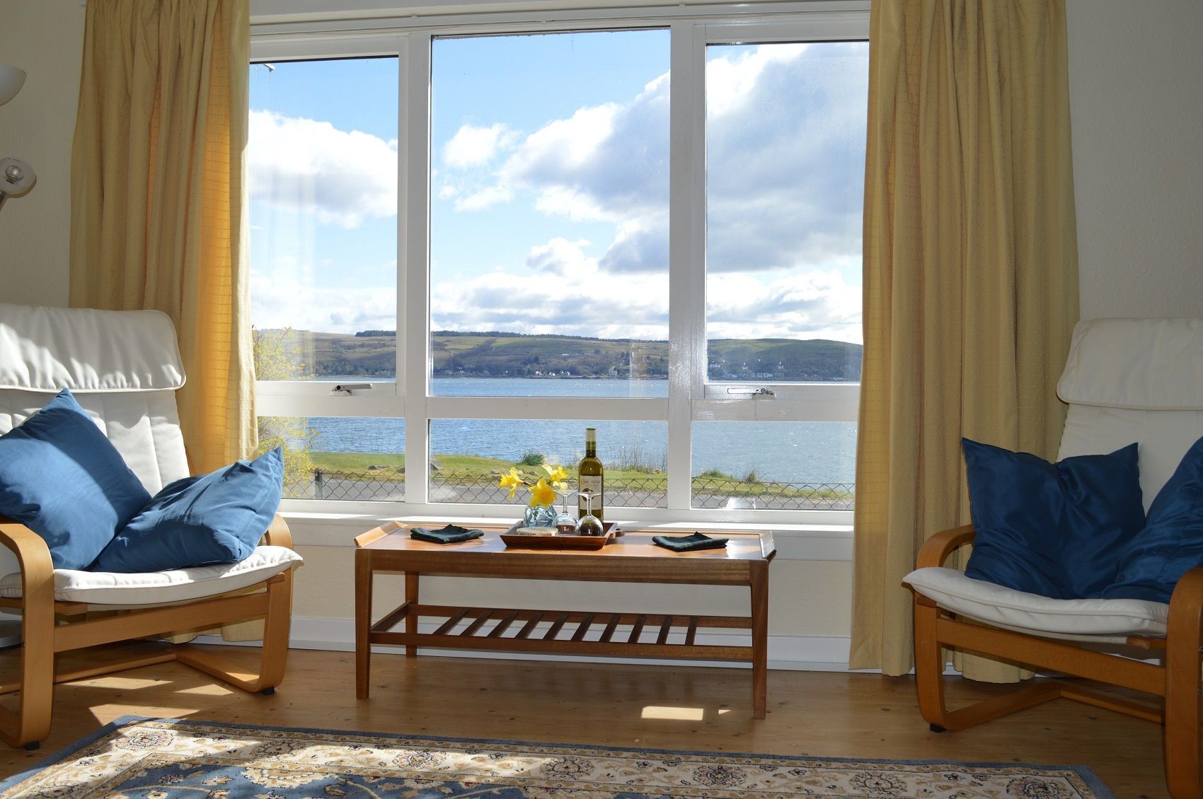 It's impossible not to relax with the ever changing stunning view of the tidal waters, the passing Bute ferries, military ships, submarines and summer cruise ships. Many hours can be passed watching the magically calming view.