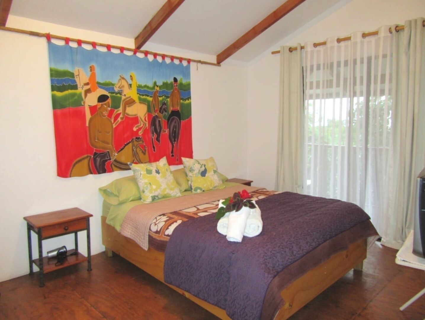 The house is not in the center of town, so there is more vegetation, and it is common to see pet chickens and horses. The chickens are wild, and we cannot control their entry to the site
