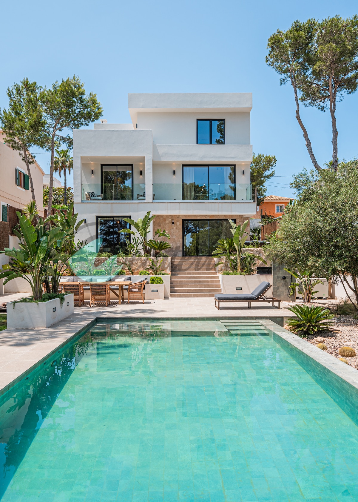 This villa with private pool and garden is located within walking distance (1 km) of Port Adriano and the beach of El Toro. It features an open-concept lounge with full equiped kitchen and pool view. The pool terrace is equiped with comfortable sunbeds, umbrellas and a barbeque. The inside has been fully renovated in June 2017. The house is 150 sqm large in a 500 sqm plot located in a residential quiet area. Pool is 30 sqm large. Quietness of the environment needs to be preserved.