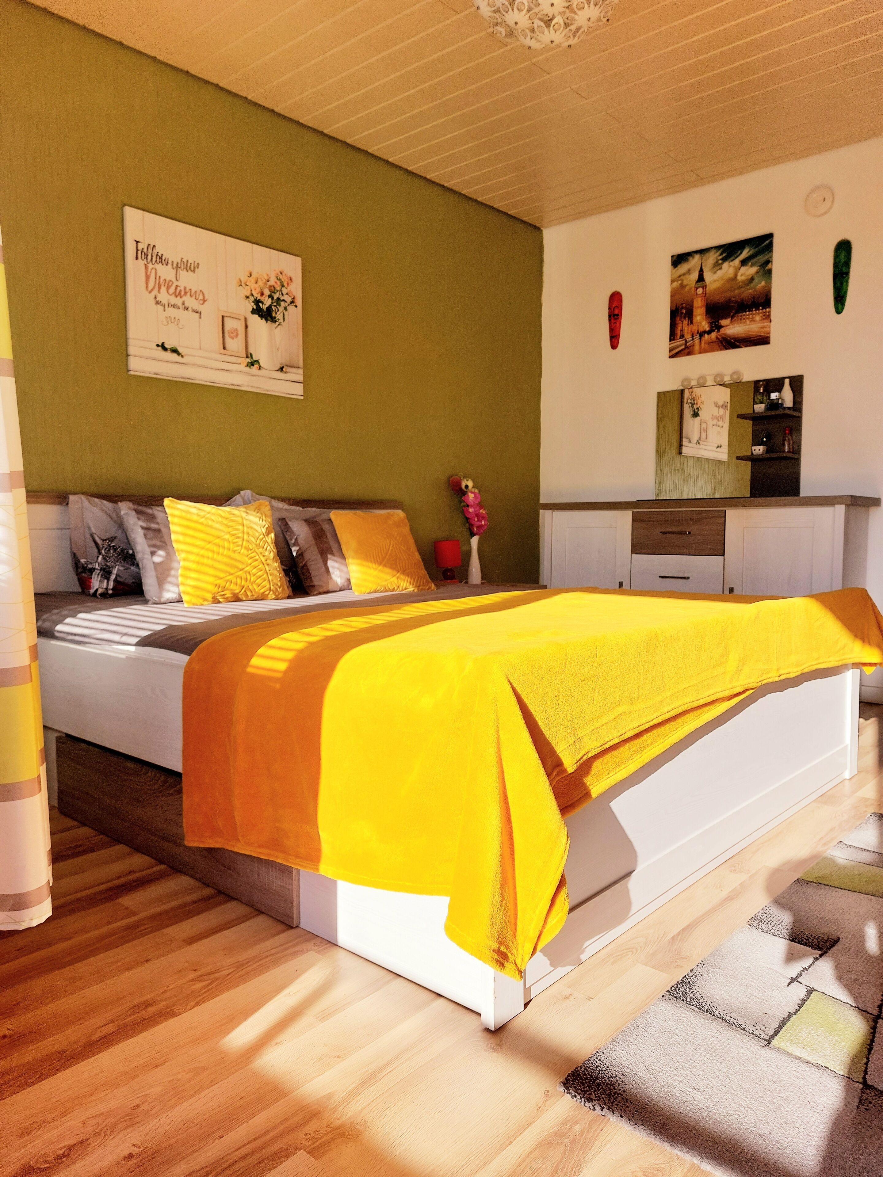Quiet room close to the city center, university, clinics, Siemens. King Size double bed (180*200cm). A few hundred meters to bus stop, shopping, forest and jogging trails.