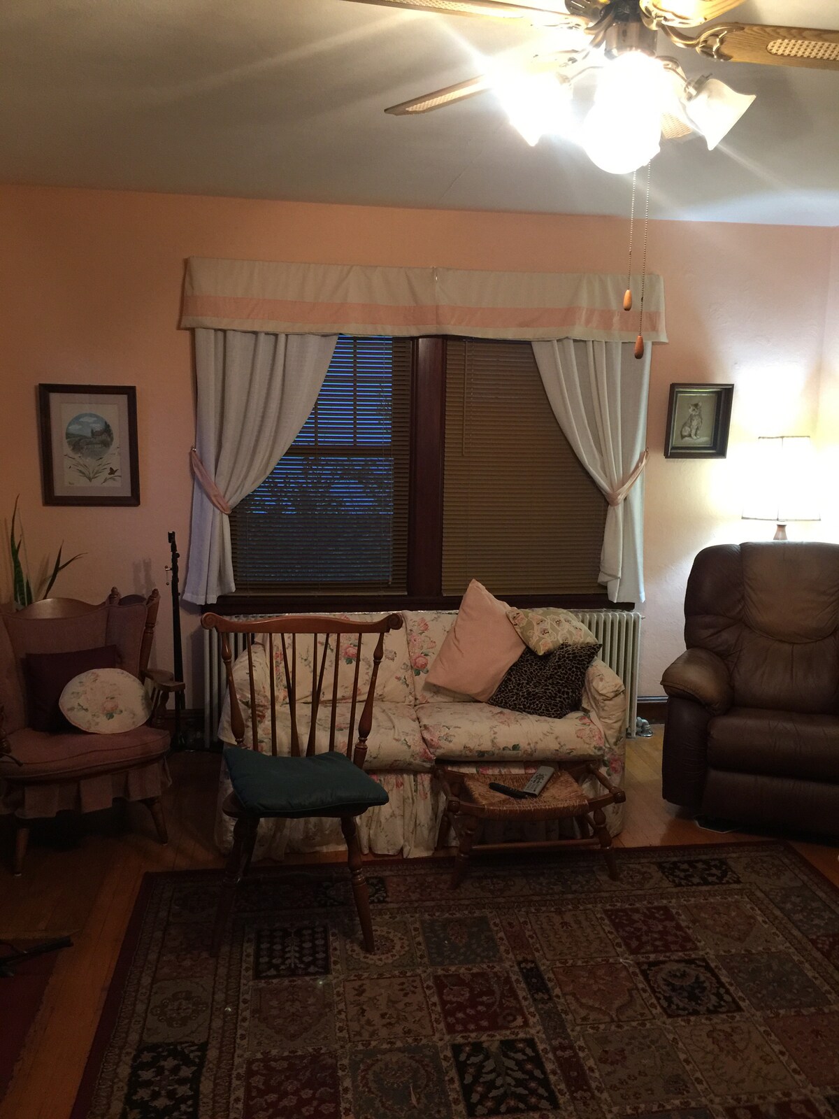 - THE LOWER LEVEL ROOM: PRIVATE spacious remodeled basement with two queen beds, one twin fold out bed,bathroom, mini fridge, microwave,coffee maker,closet, TV, recliner.