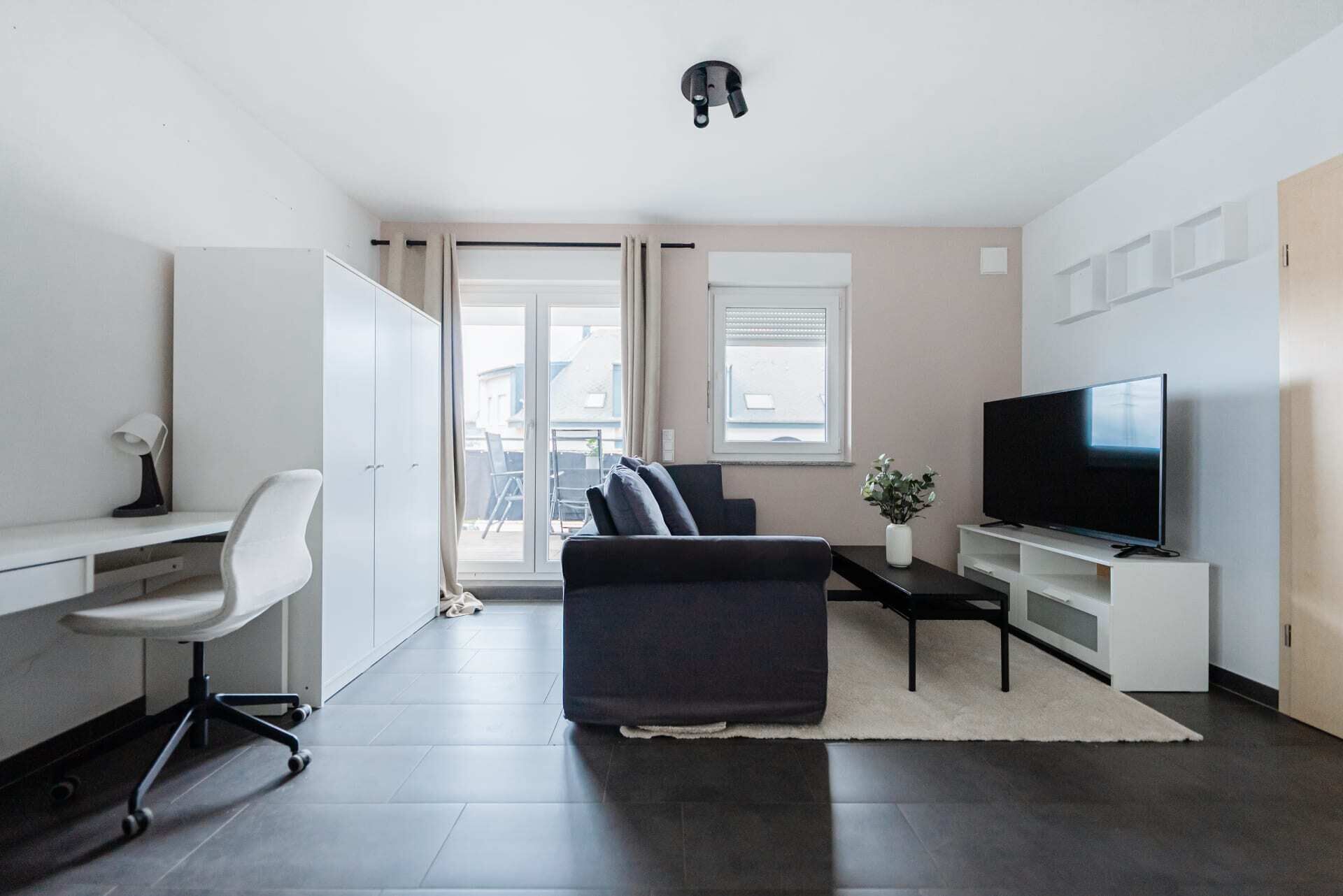 well-maintained apartment in a prime location in Belval, just a short walk from Belval University, train station, Aldi, Delhaize and Belval Plaza Mall. The space features an open-plan living and sleeping area, a modern bathroom, and is located in a secure building. Perfect for a comfortable and convenient stay!
