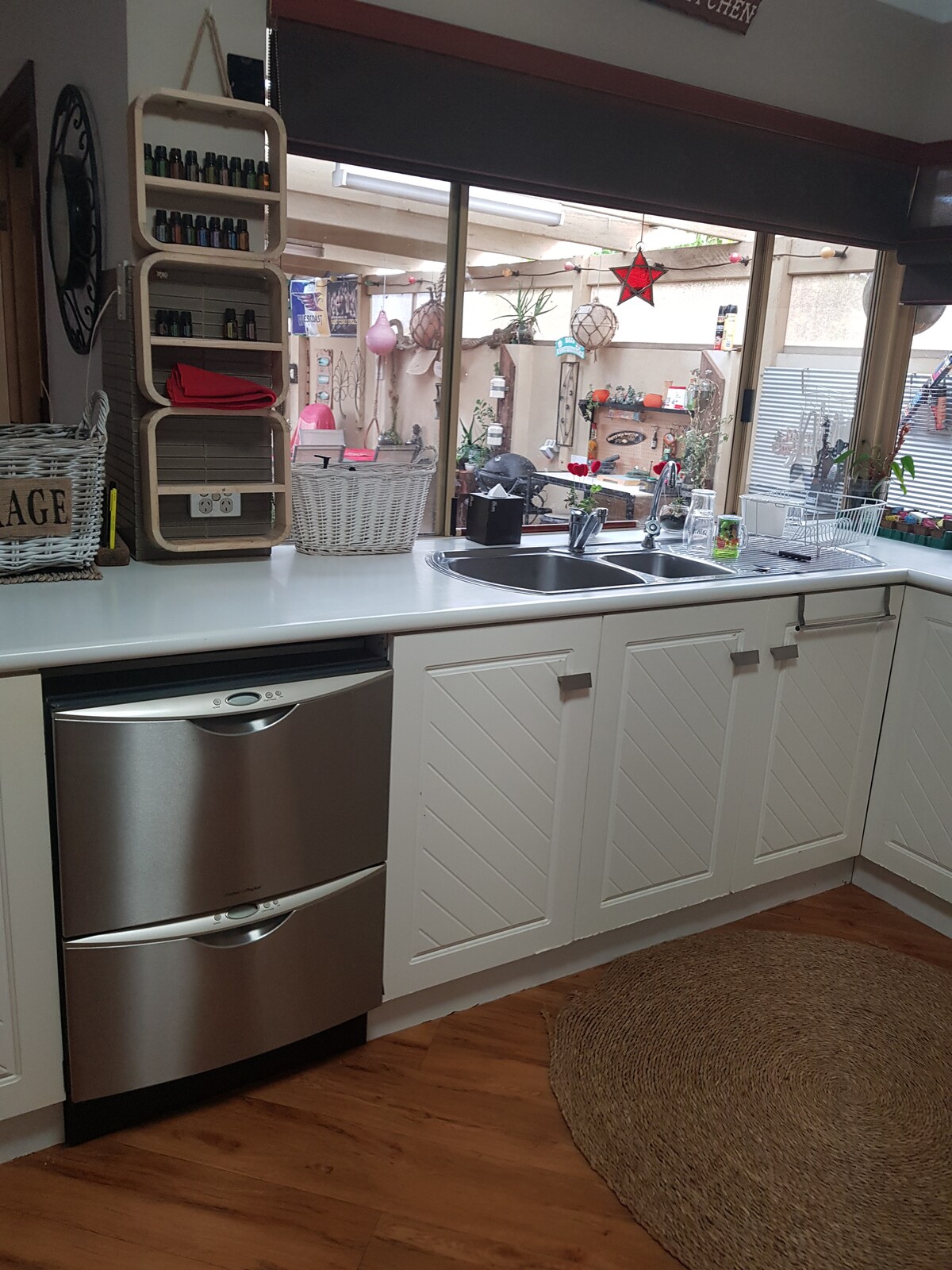 The space is open plan and includes a well equipped kitchen with oven/ stove and a full size fridge with freezer. There is a kettle, toaster, sandwich press, coffee plunger and array of cooking equipment and utensils. If guests opt to dine out there are many restaurants/ pubs and take away businesses a very short walk.