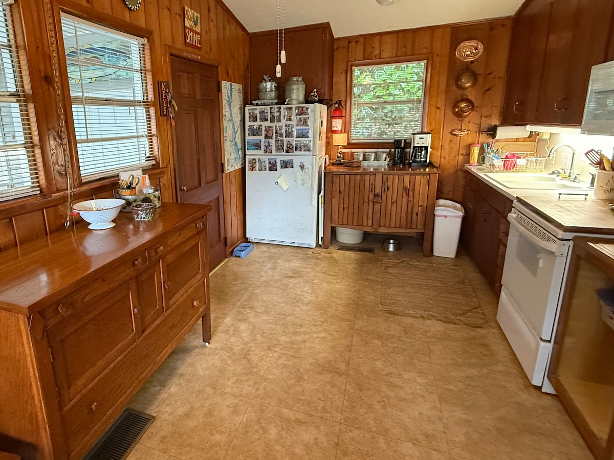 Our 2 story lake front home has 2 bedrooms/1 bath upstairs and 1 bedroom/1 bath in a seperate basement bedroom accessible via outside deck stairs. Upstairs living space includes kitchen and dining area, living area, and side/cove area with additional full sized bed.
