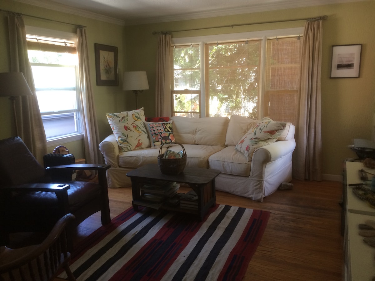 Cozy arts and crafts bungalow in a safe neighborhood within walking distance to the small yet vibrant town of Fairfax...good restaurants, an excellent natural health food store, micro-brewery, movie theater, quaint shops, homemade organic ice cream shop, night time live music, bike shops,etc...several hiking and bike trails nearby,
