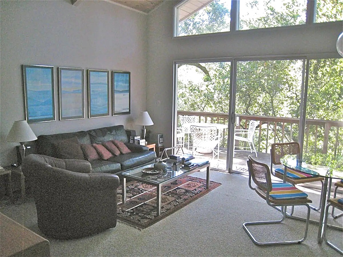 Our 1500 sq ft. house is loft-style, built on a large rock with views of the Marin Mountains. Take pleasure in relaxing nights as you hear the crickets chirp and the rushing of the creek during the rainy months. Our house is a beautiful, tranquil place to unwind and enjoy everything that nature has to offer. On any given day, deer can be seen as close as 10 ft. from the outside deck.