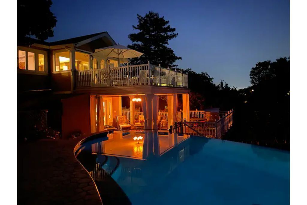 "Mountain View Retreat" and everything shown in the photos, including the pool, hot tub, and the expansive decks, are all located on the lower garden level of a two story home. Guests will have exclusive access to everything described and seen in the photos. The retreat is for your use alone during your stay. The upper level "main house" is owner occupied but has been closed off from the lower level to provide maximum privacy.