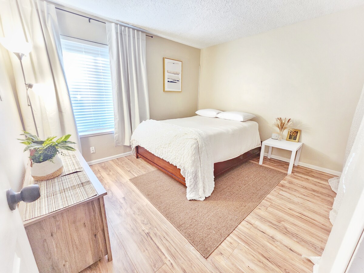 Spacious bedroom with queen size bed, Tv, large closet and dresser. Bedroom rented on monthly basis. Price will be adjusted with 20% off once booked. Please inquire for other booking arrangements.