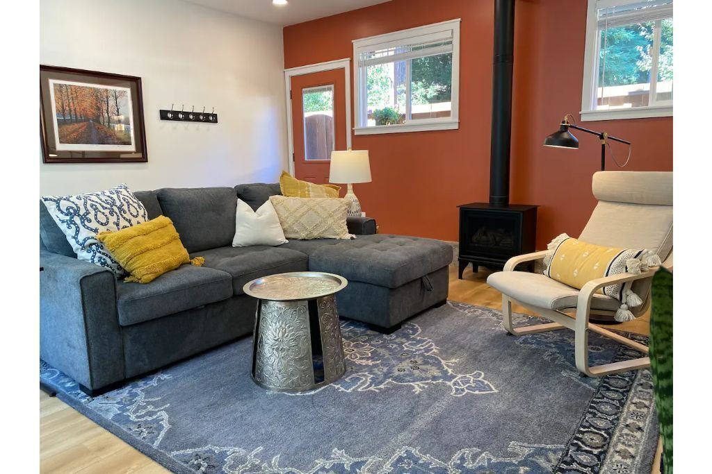 Hang out on the huge patio with soaring redwoods as the backdrop. Cozy up by the fire pit and enjoy the starry sky at night.