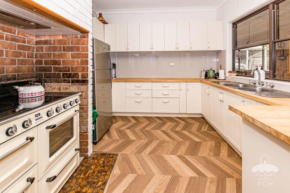 The kitchen is fully equipped with quality pots and pans, ample crockery, cutlery and glassware, along with a great selection of serving bowls and platters. A gas cooktop, electric oven and microwave are supplied, along with dishwasher, kettle, toaster, coffee plunger and stove-top espresso maker. There is even a blender and food processor if you’re feeling the need to cook up a storm, or, simply throw a snag on the BBQ on the verandah for ease!