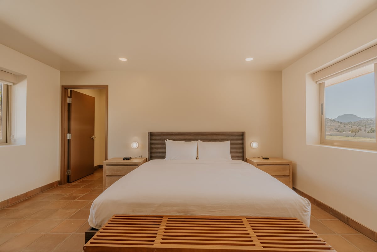 This rustic space, adorned with wooden furniture and a cozy fireplace, invites you to unwind and relax. Desert light and landscape serve as part of the interior design, naturally immersing the unit into its surroundings. The outdoor seating area lets you soak in the expansive outdoor spaces, designed for big nature and high adventure. Experience the air, light, and colors of the mountain desert under brilliant night skies, connecting deeply with the spirit of the American West.