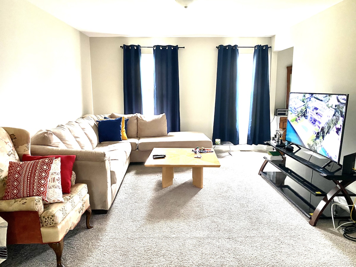 Cozy, sunlit private bedroom with a queen-size bed, perfect for solo travelers or couples. Enjoy a comfortable stay with access to a private bathroom. Located in a quiet neighborhood, just 10mns drive to Downtown Fredericksburg, VA