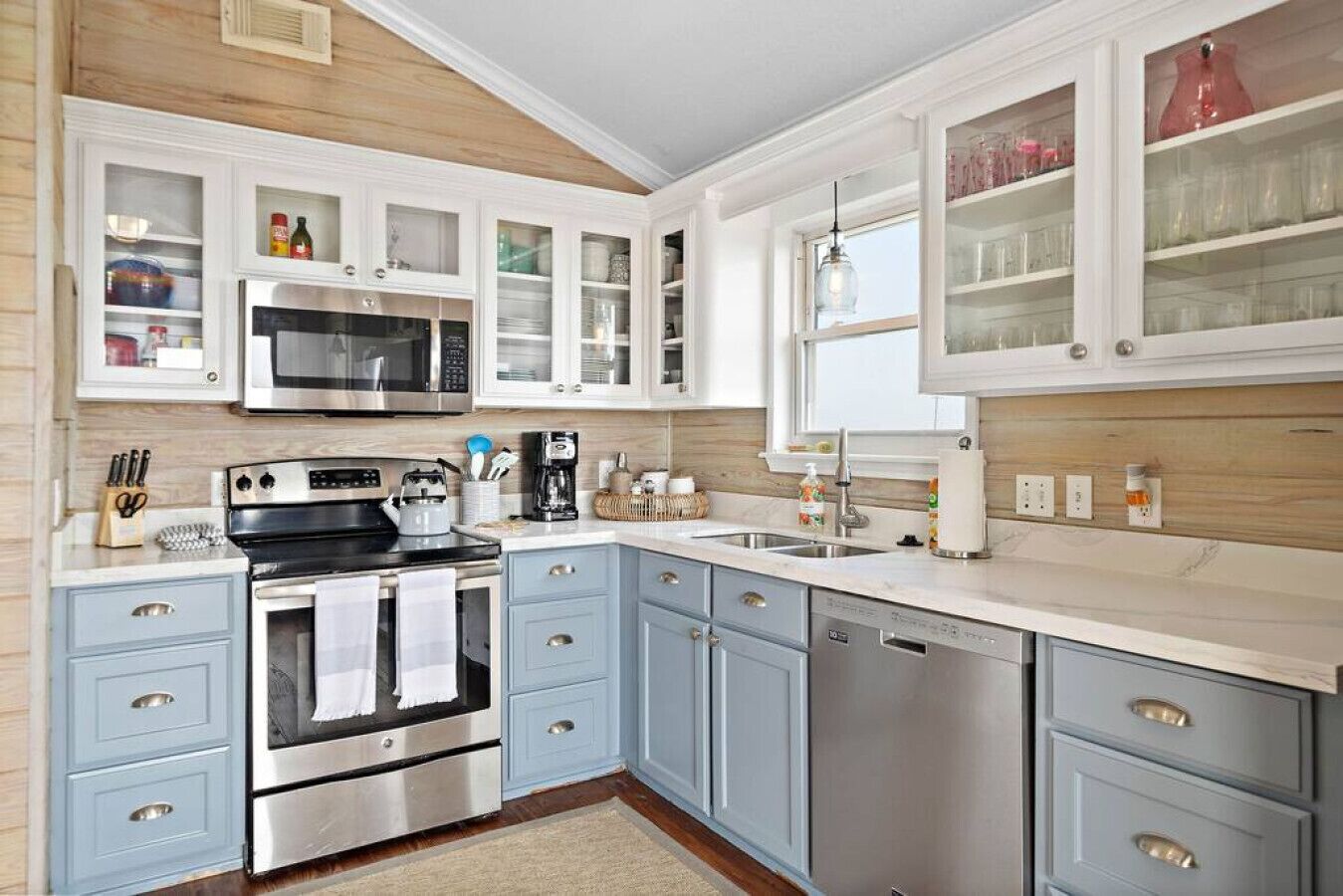 The kitchen is fully stocked with pots, pans, baking sheets, cooking utensils, and more. Below are a few highlights.