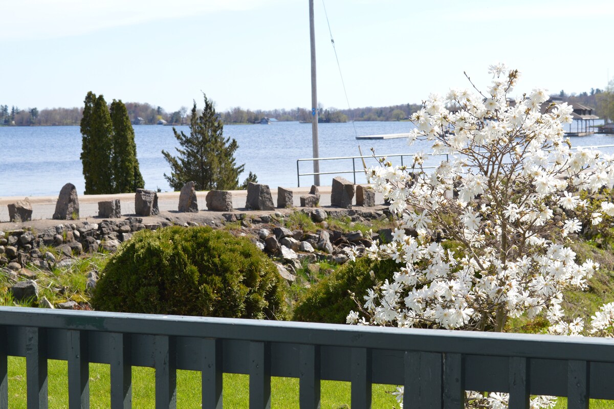 Looking out at the beautiful 1000 Islands. Close too many amenities , walking distance to downtown area with many restaurants , Theatres and Art Galleries . Just a walk across an old swing bridge to get to the Boatline Cruises in the Summer Months. Can only rent for 28 days or more