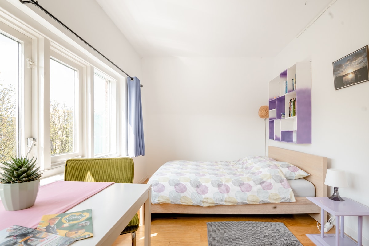 one of 3 rooms we have to rent in house at the canal in the centre of Gouda. There is room for 2 persons and with extra beds for 5 and a baby