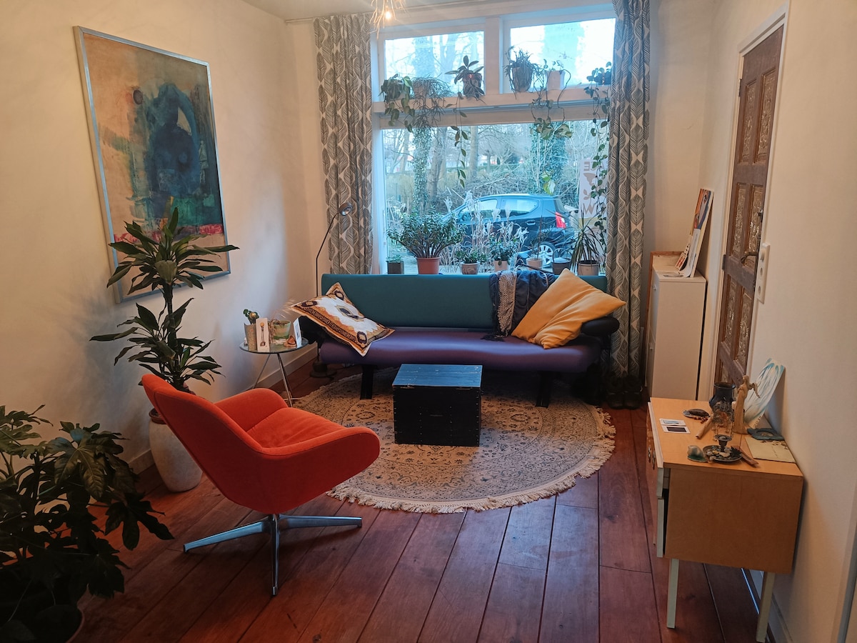 one of 3 rooms we have to rent in house at the canal in the centre of Gouda. There is room for 4 persons and with extra beds for 5 and a baby.