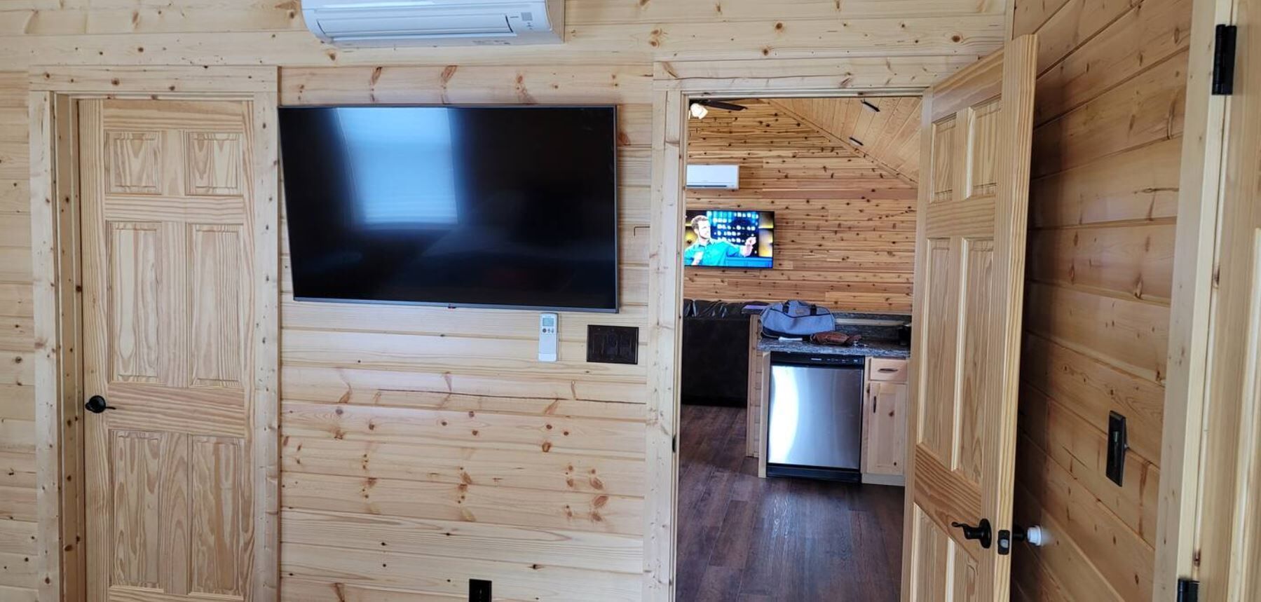 A tiny house cabin located at Cedar Ridge RV Park in Glen Rose, TX.