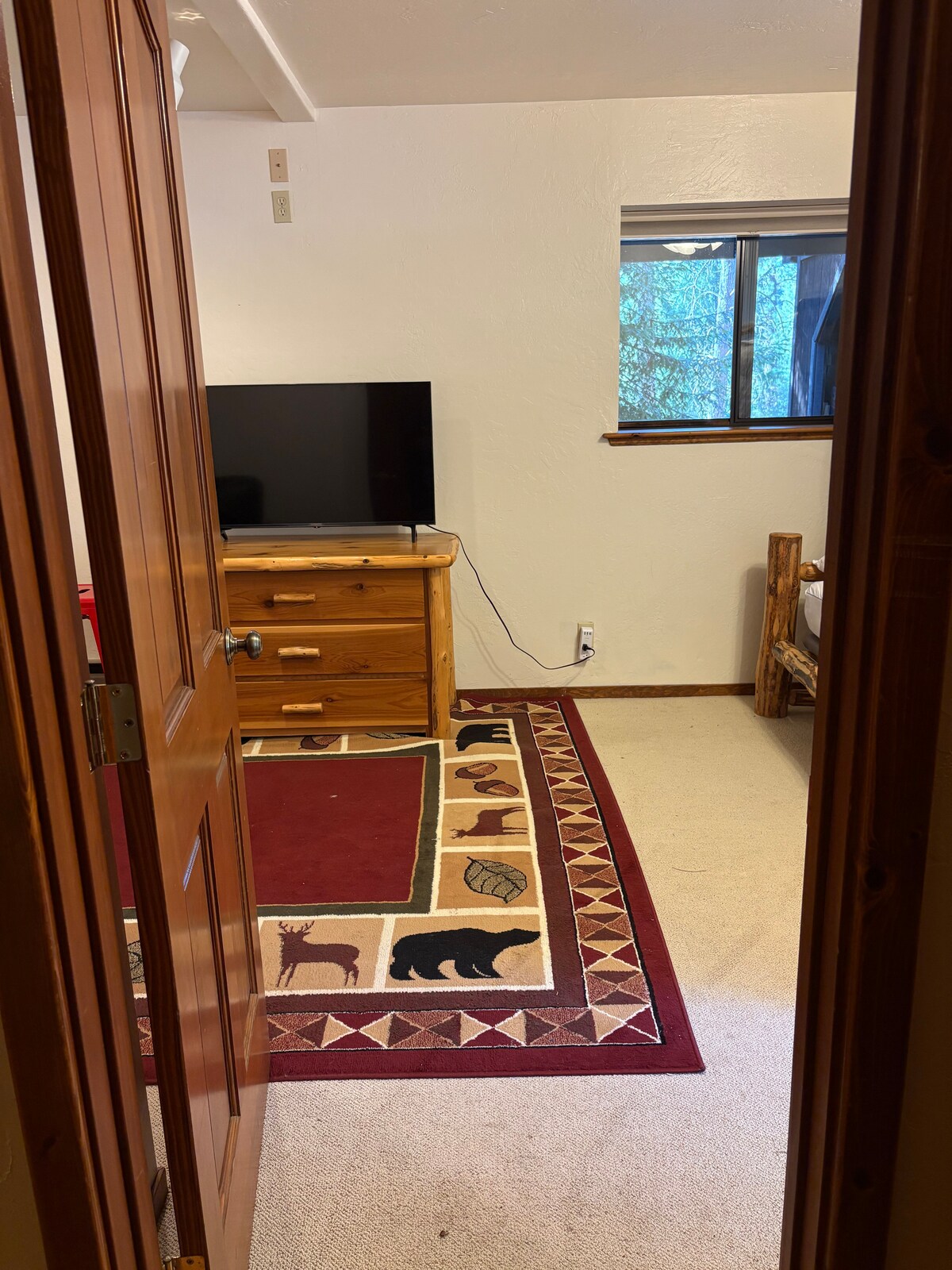 The large master bedroom is located at the end of the hall and has a new pillowtop kingsize mattress and a sliding glass door opening onto the deck with meadow and forest views. The second bedroom is smaller but has a very comfortable new pillow-top queen size bed, nightstands and a dresser. There is an additional closet in the entry way if hanging space is needed. (See 'Property Details' for additional information.) The furniture in the living room is extremely comfortable, the kitchen is fully equipped and the views from every window are exquisite.