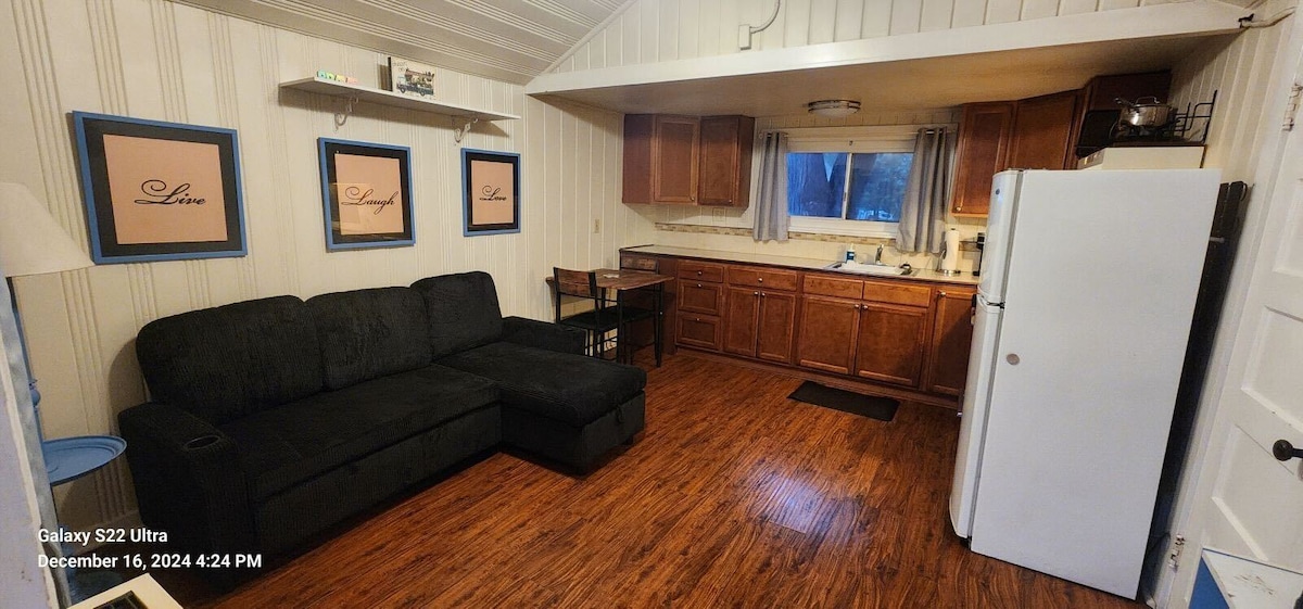 Your private retreat sits back off the street, behind the main house, across from the Sierra Mountain Inn. The unit is located down the driveway, through the gate, to the left of the garage. The entrance is located on the left. You might be greeted by our small Pomeranian Harley and our cat Electra.