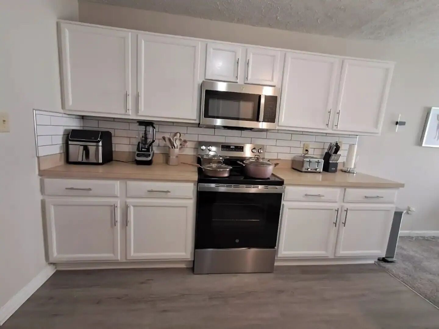 ✔ Fully stocked including a toaster, crock pot, popcorn air popper, grilling utensils, baking essentials including hand mixer.